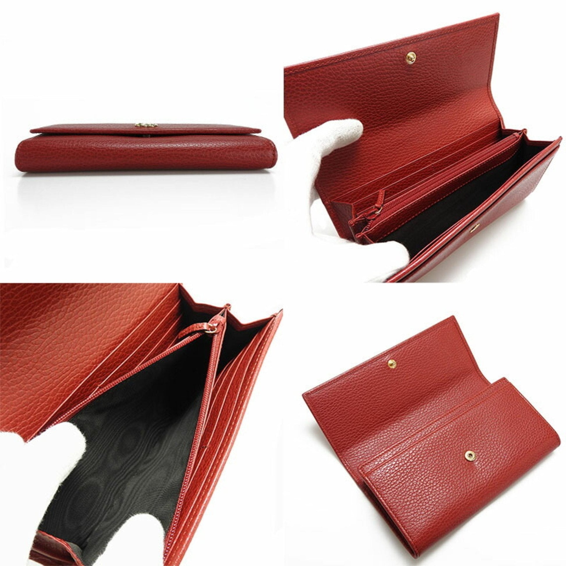Introducing the Gucci GG Marmont Long Wallet, a stylish accessory designed for the modern woman who values both fashion and functionality. Crafted from luxurious red leather, this bi-fold wallet seamlessly combines elegance with everyday practicality.