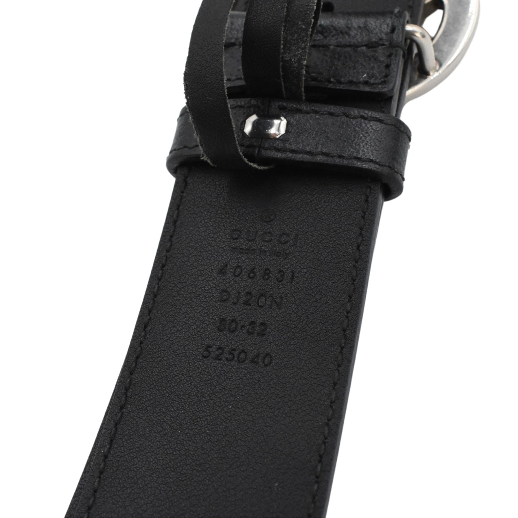 Gucci belt in black textured leather with silver 'GG Marmont' belt buckle.