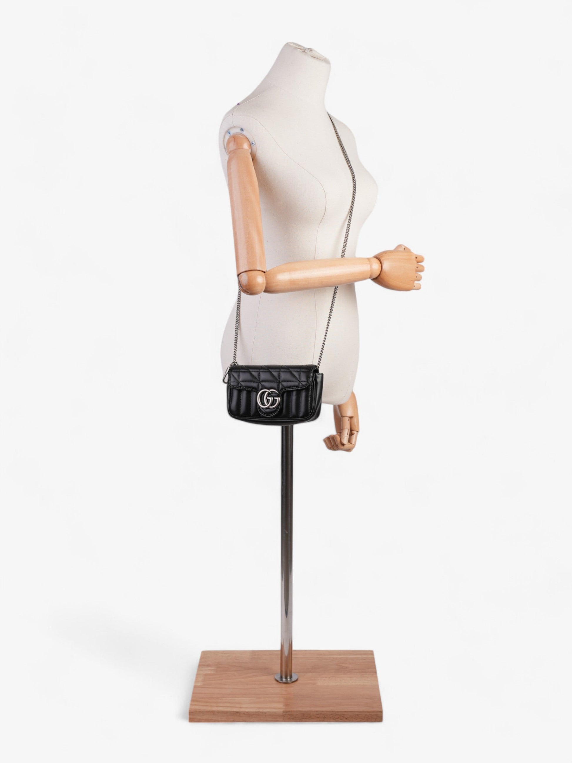 Gucci GG Marmont Black Matelasse Leather Super Mini