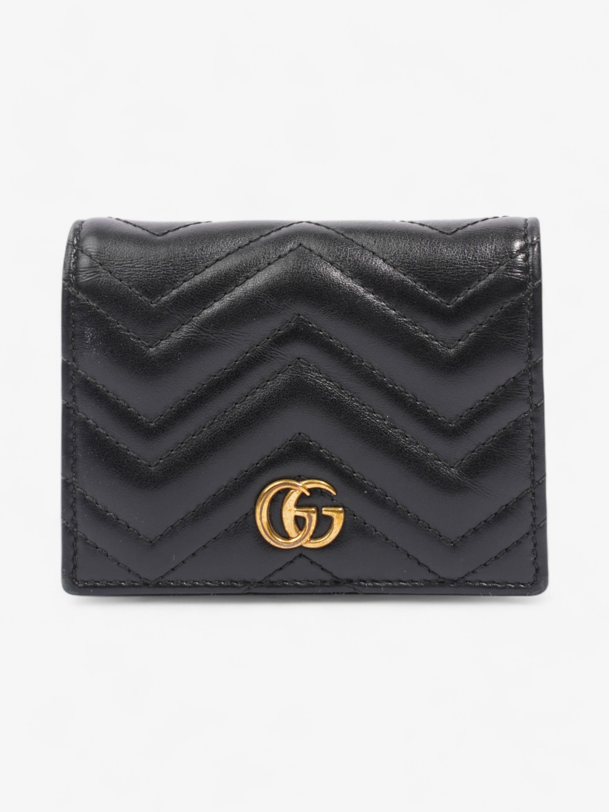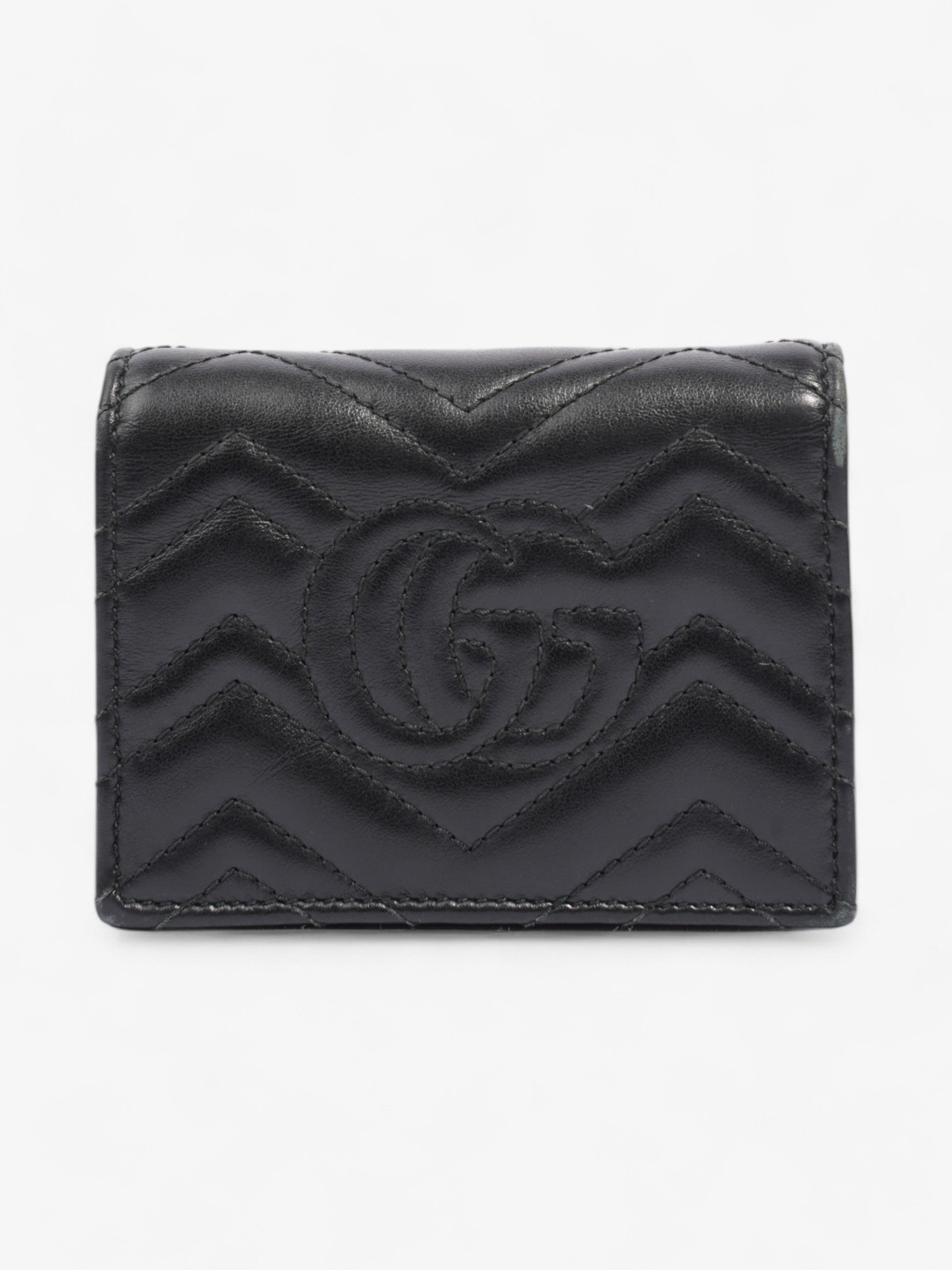 Gucci GG Marmont Card Case Wallet Black / Gold Matelasse Leather