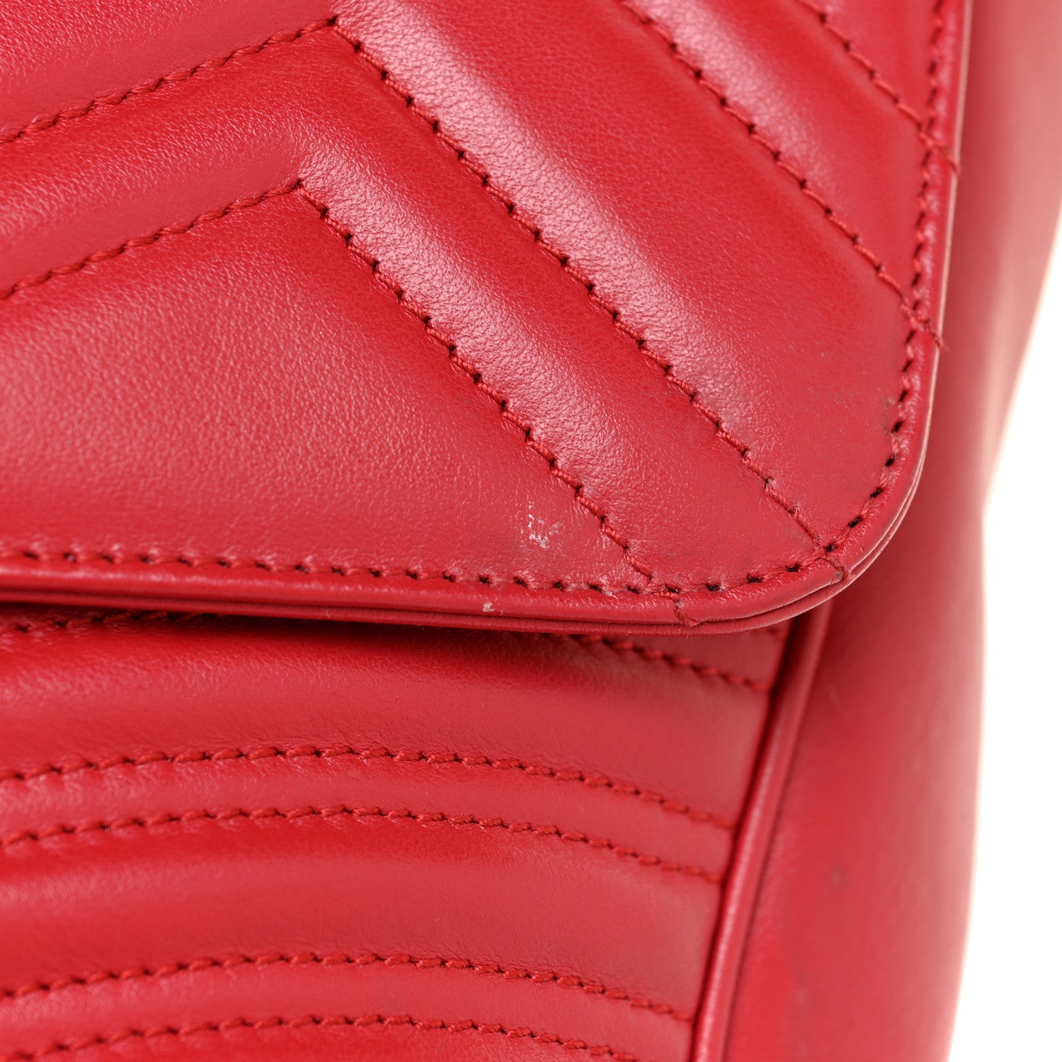This Large GG Marmont chain shoulder bag has a softly structured shape and an oversized flap closure with Double G hardware. The sliding chain strap can be worn multiple ways, changing between a shoulder and a top handle bag. Made in matelassé chevron leather with a heart on the back.