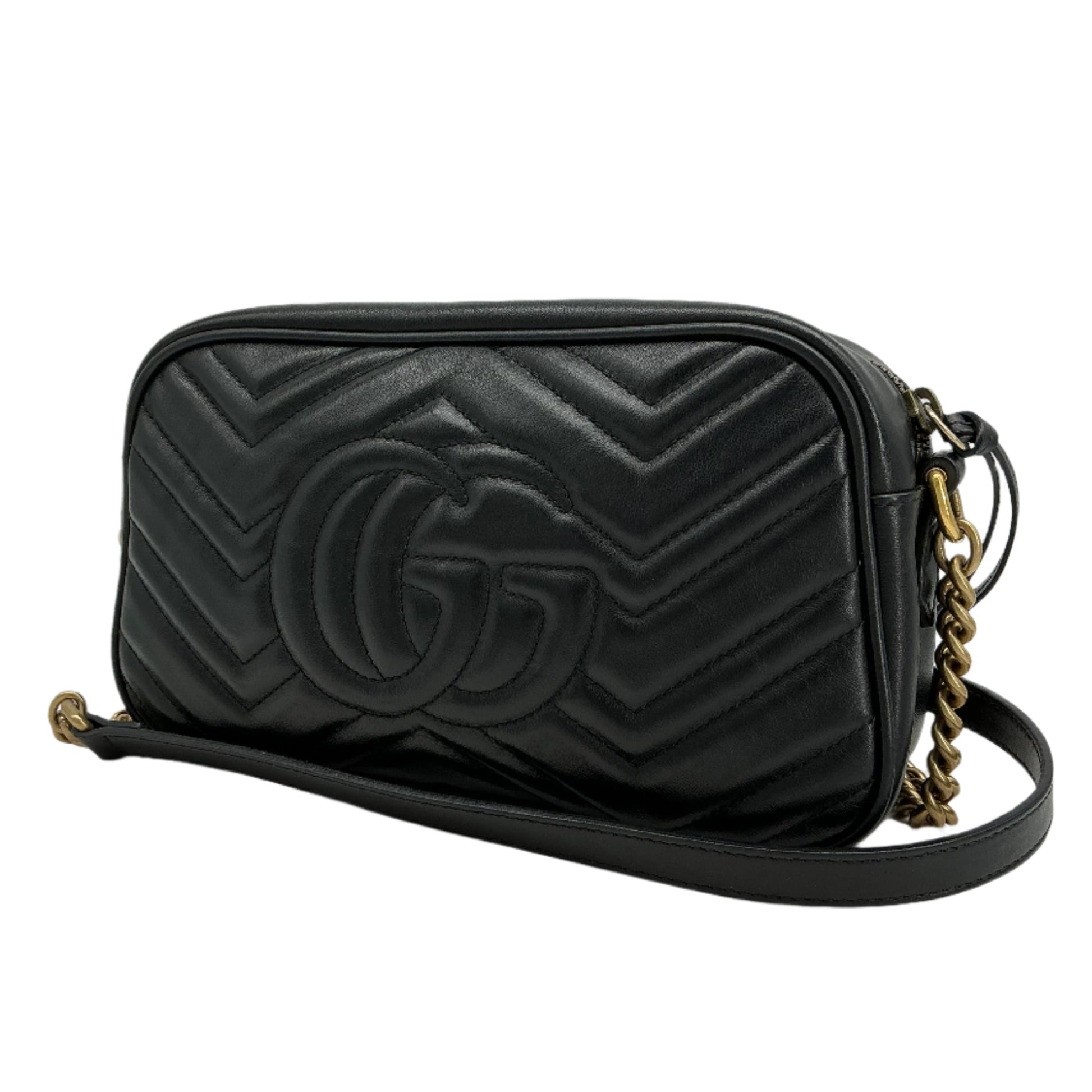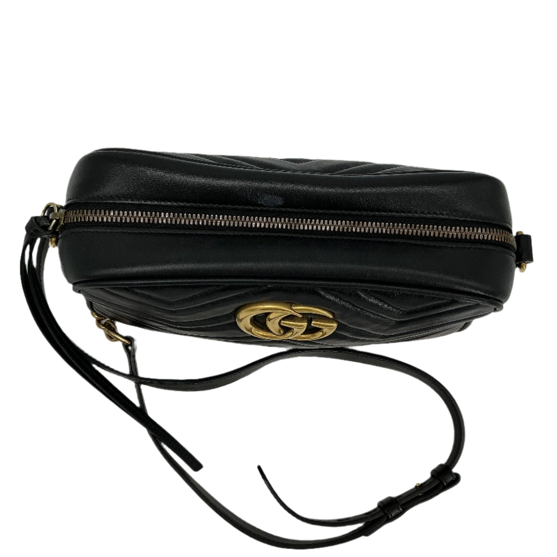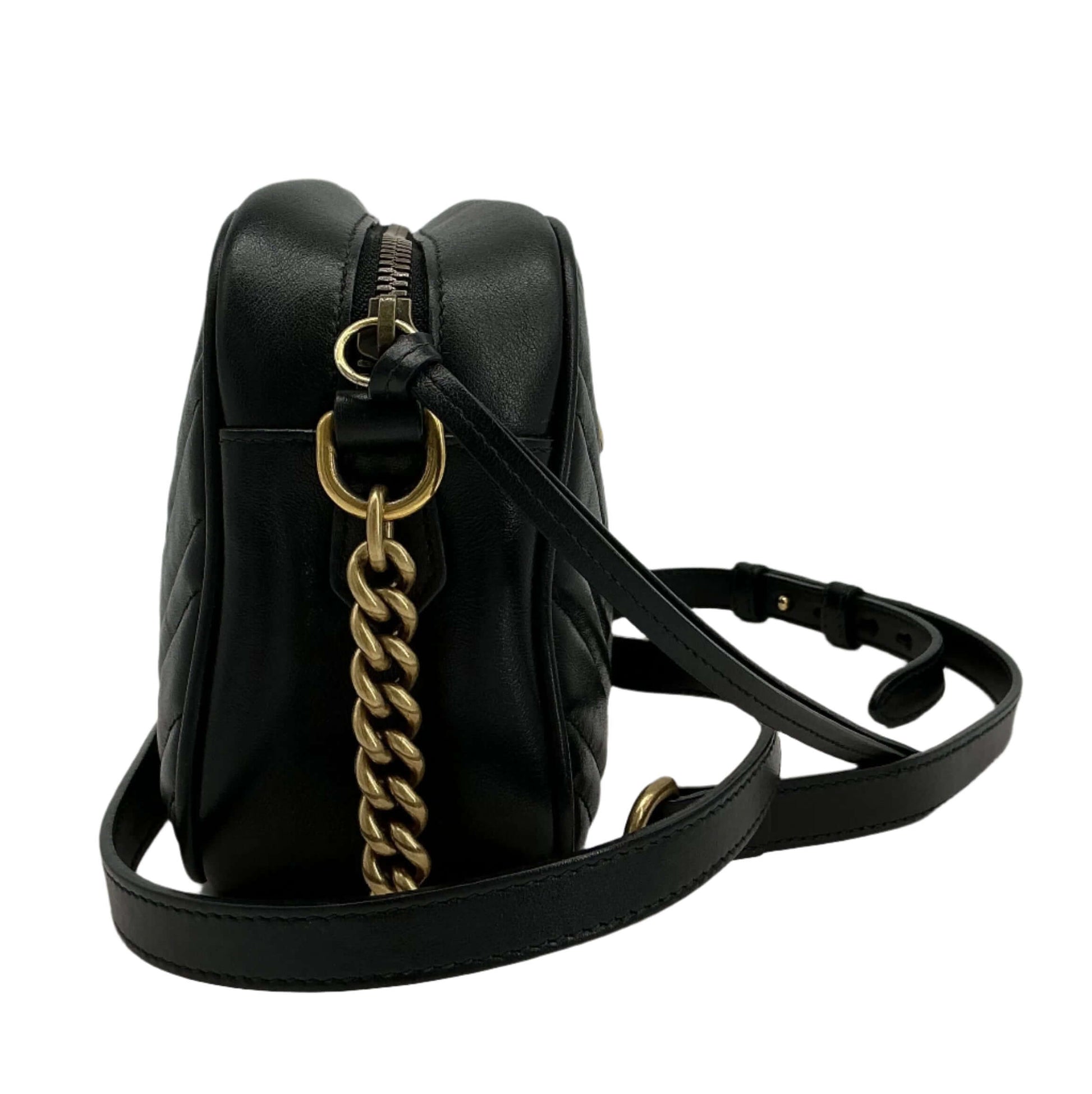 Gucci GG Marmont Small Matelassé Chevron Camera Bag – Black