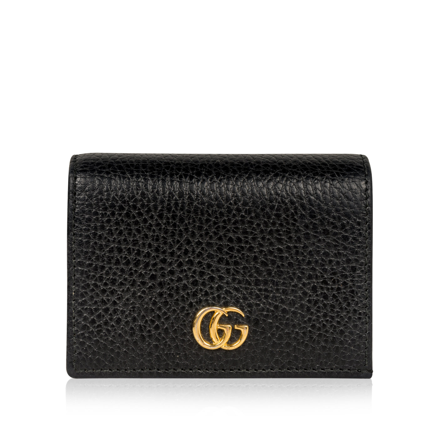 Why are wallets always so big? Why are cardholder's the perfect size but also so inconvenient for cash and change? Why can we never find the perfect in between? Just kidding, we found one and she's right here. This itsy, bitsy, teeny, tiny wallet from Gucci features everything you've been looking for. Small but mighty, you can easily fit all your cards, bills and yes, even loose change inside this little gem - and her gorgeous appearance is just the cherry on top. Crafted from black grained leather and complimented by a gold-tone GG logo, this chic, stylish and practical little baby is just a piece that everyone needs in their life. The perfect balance between fashion and function, this GG wallet is a true must-have for any woman with a love for luxury and all-things glam.