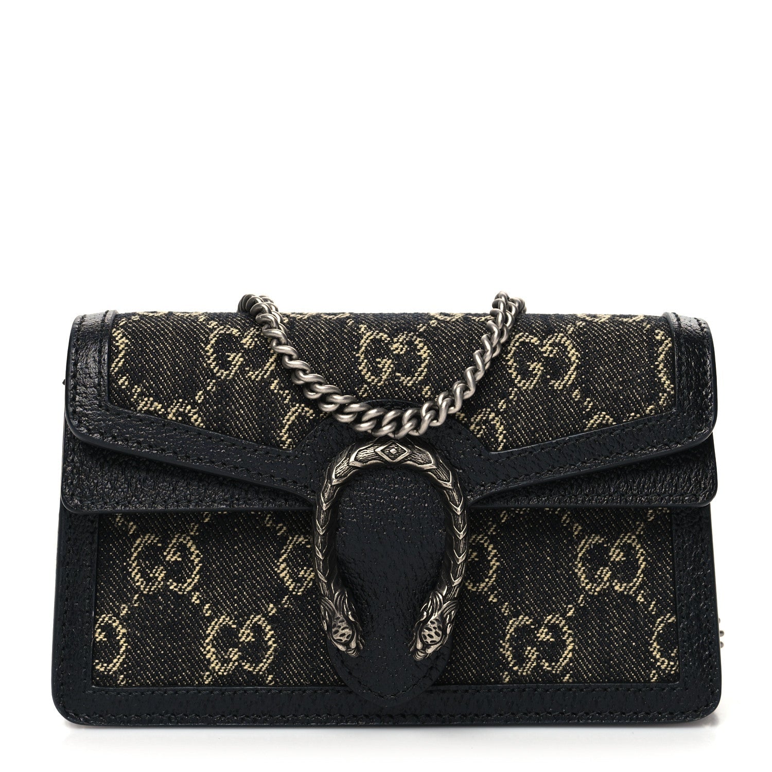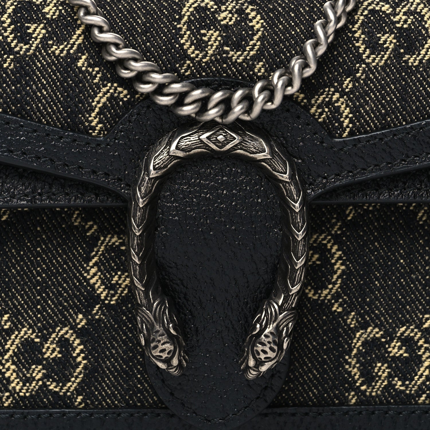 GUCCI GG MONOGRAM BLACK DENIM SUPER MINI DIONYSUS SHOULDER BAG