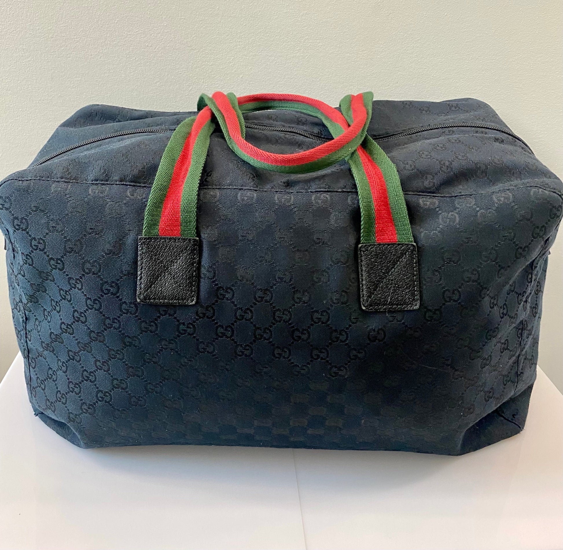 Crafted from GG canvas, it has dual Web-striped handles, a top zip closure, and a very spacious interior that can easily hold your travel essentials.