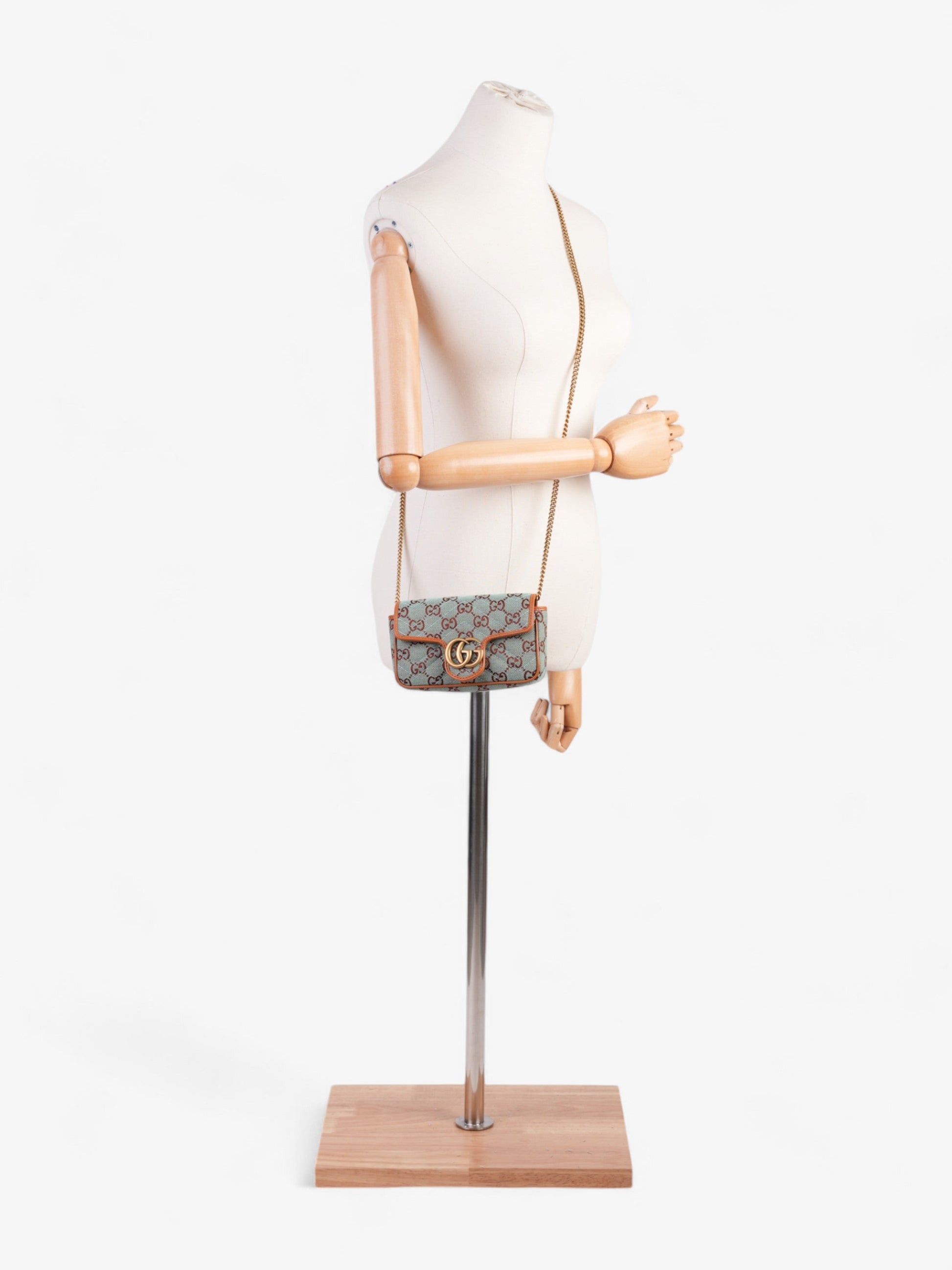 Gucci GG Shoulder Bag Pale Blue / Brown Canvas Super Mini