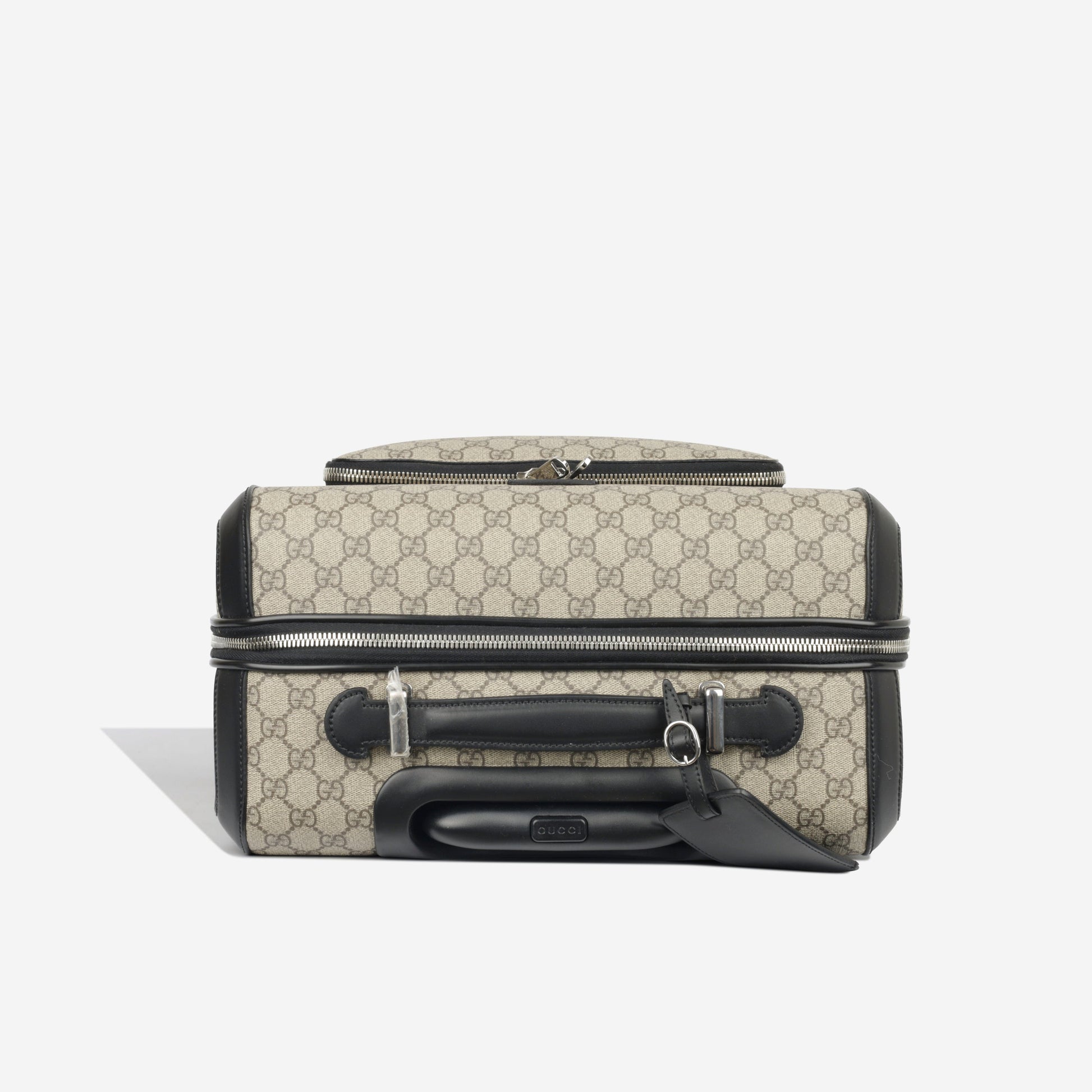 Crafted from GG Supreme canvas and accented with a black leather trim. The GG Small Cabin Trolley is inspired by heritage pieces that have been transformed for modern day use.