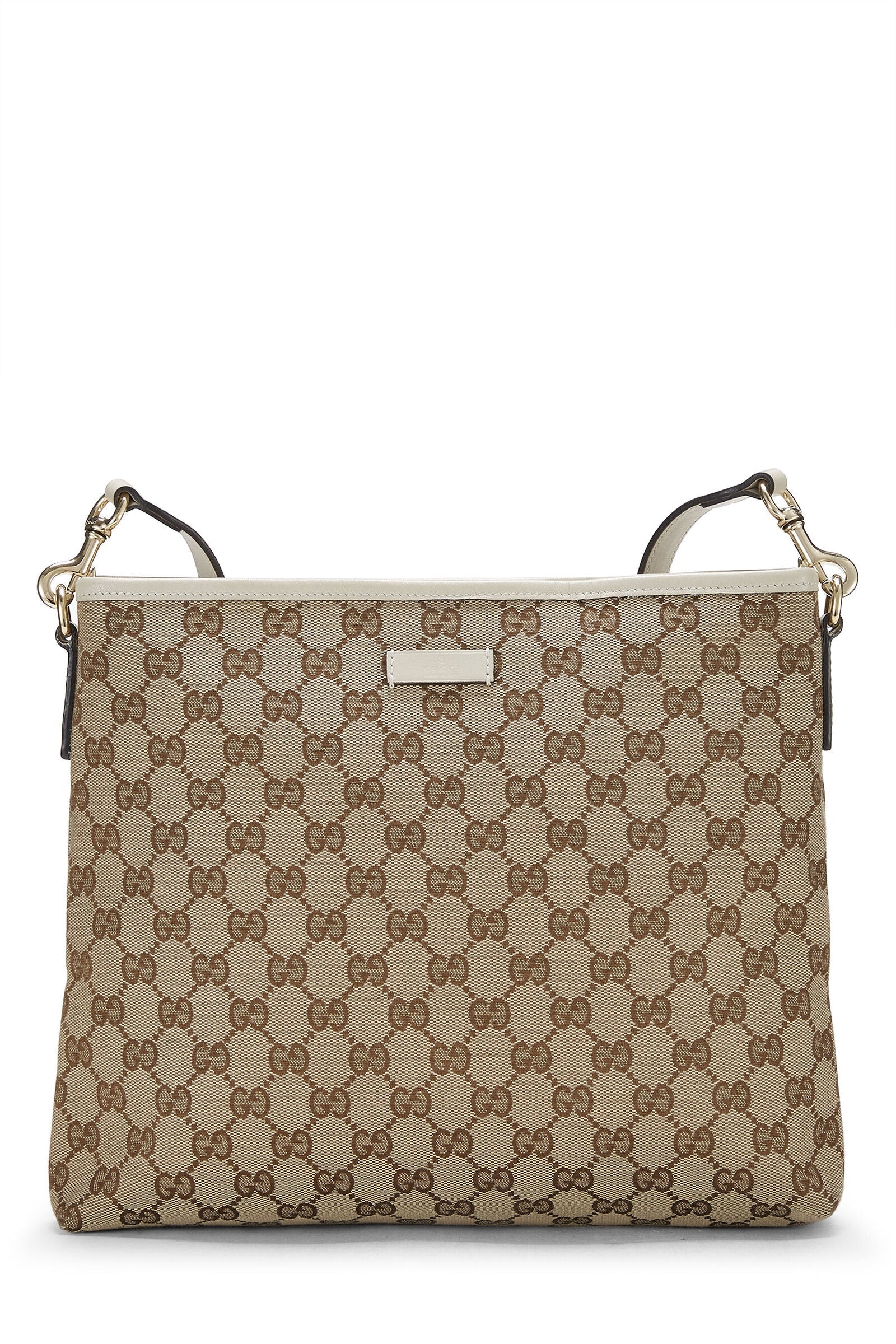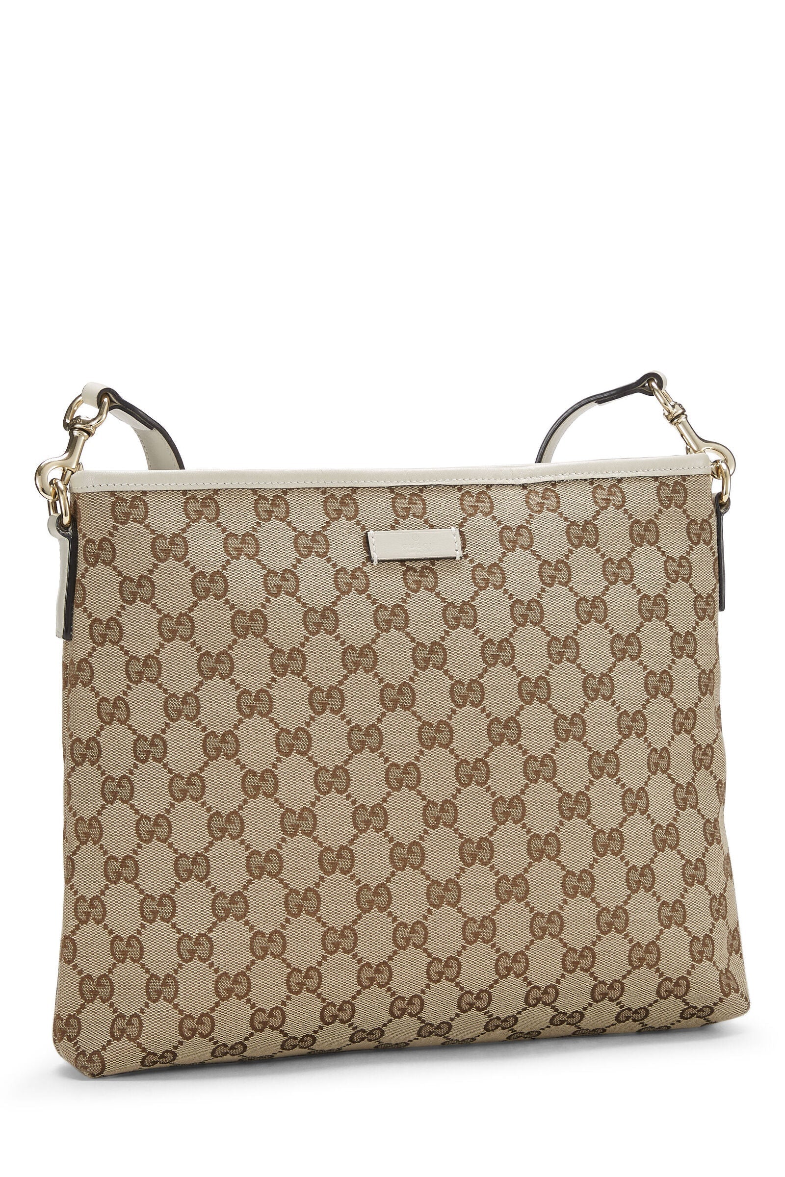 Sleek Gucci Flat Messenger bag rendered in the house's beige Original GG canvas, trimmed with white smooth leather and finished with pale gold-tone hardware.