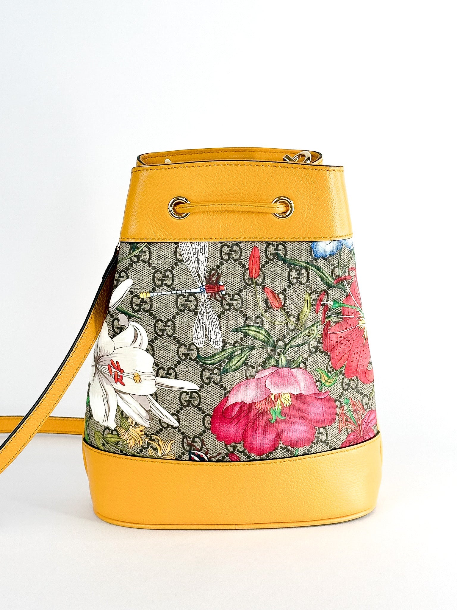 Gucci GG Supreme Flora Small Ophidia Bucket Bag