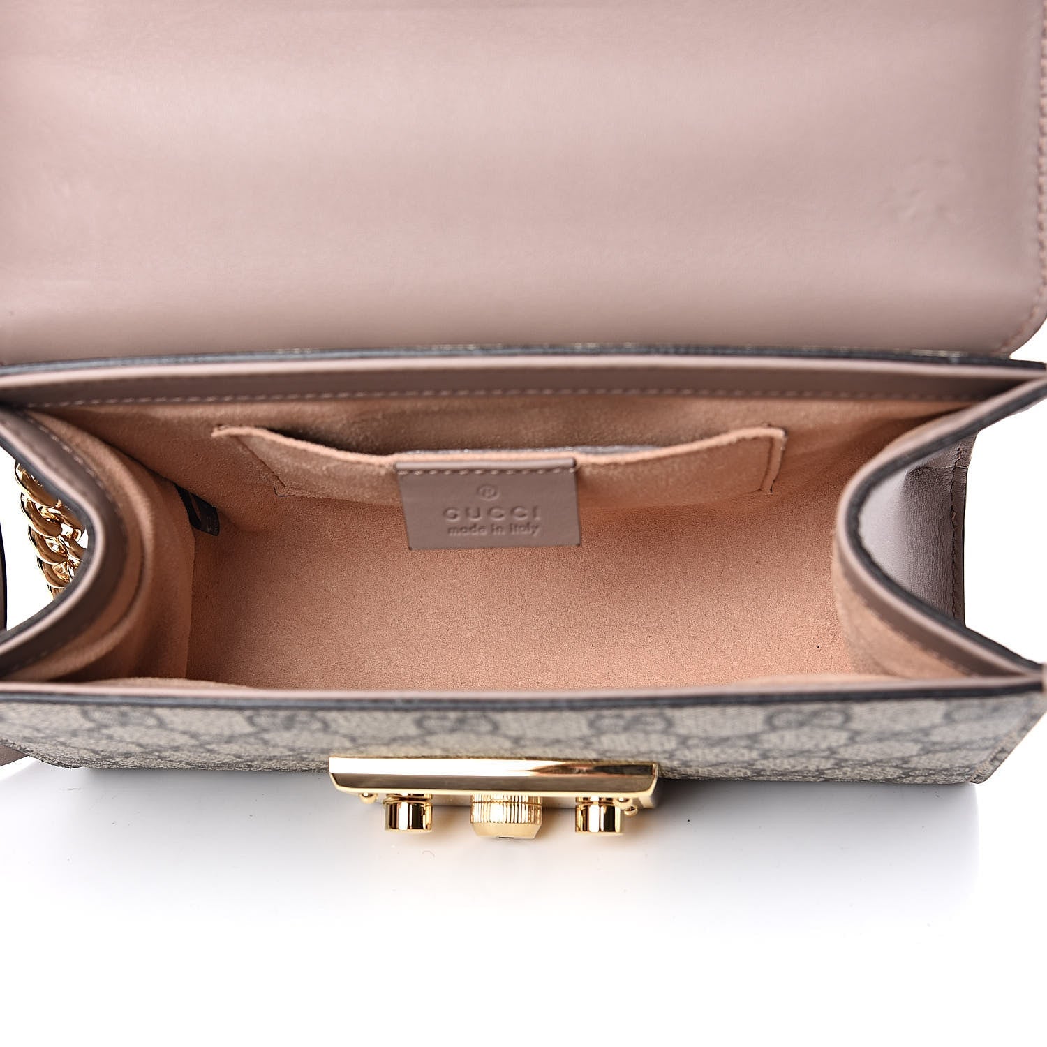 GUCCI GG Supreme Monogram Small Padlock Studded Shoulder Bag in Porcelain Rose.