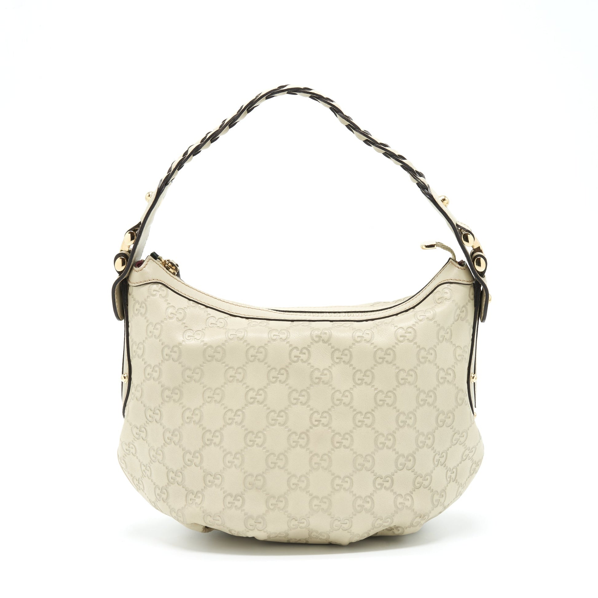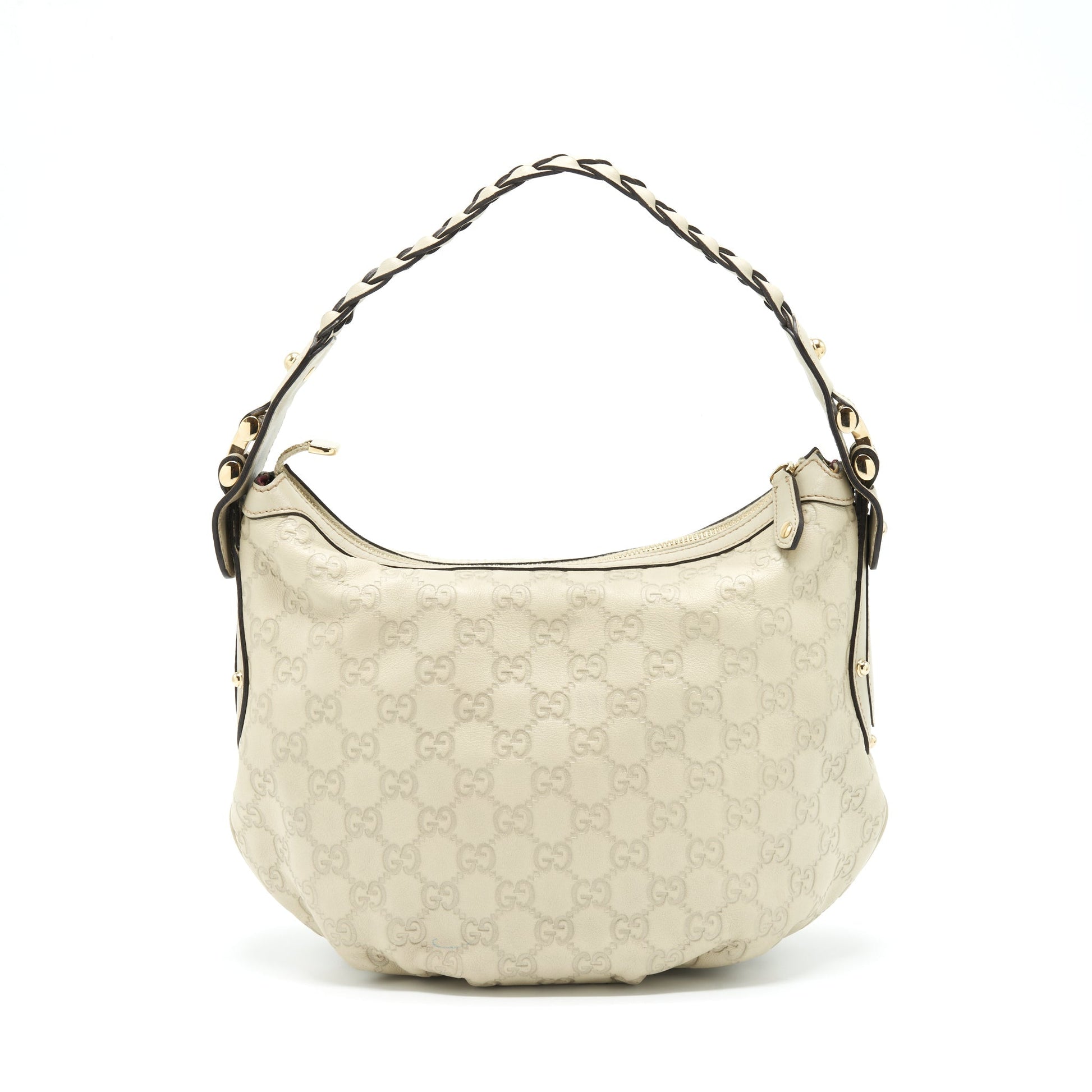 Gently ( This item is in excellent condition with slight scratches on hardware, slight rubbing on corners and edges, light colour transferred on leather.)