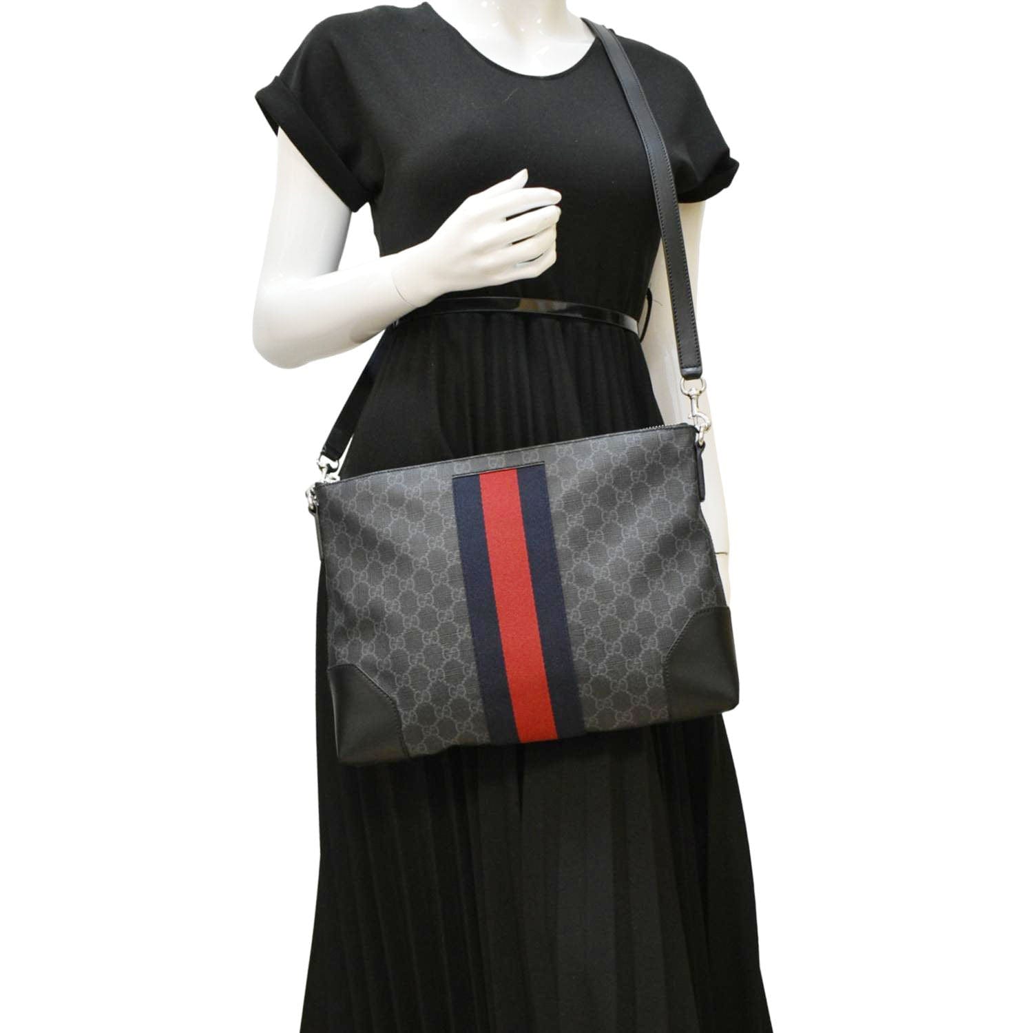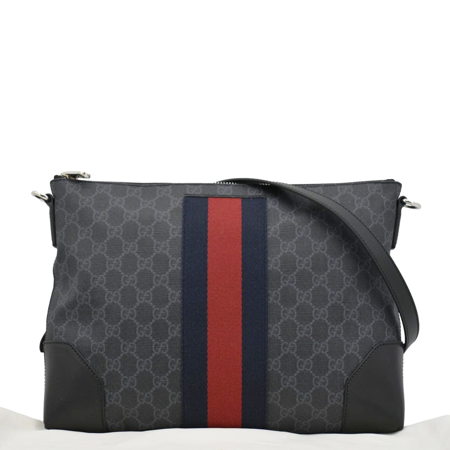 GUCCI East West GG Supreme Web Messenger Bag Black 474139