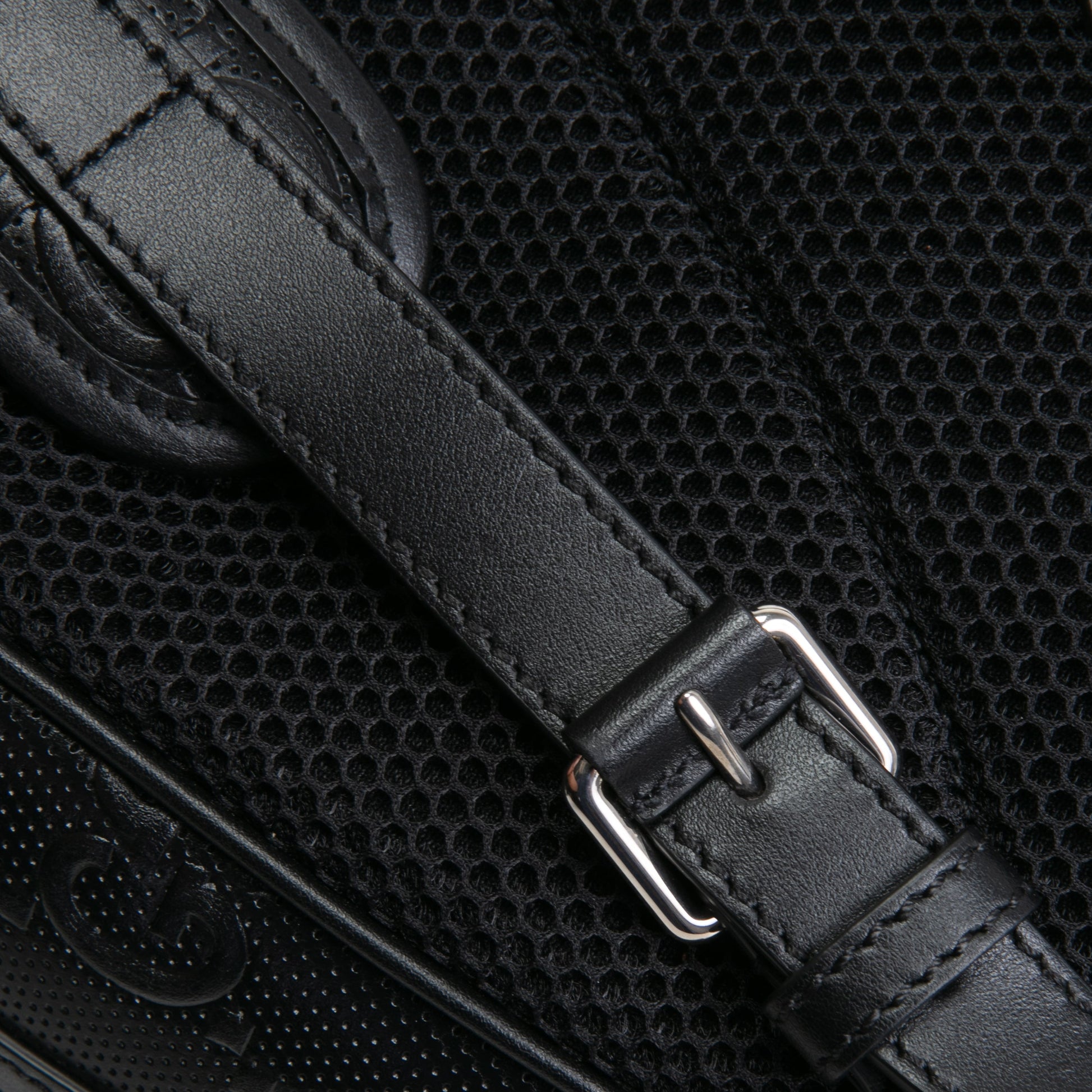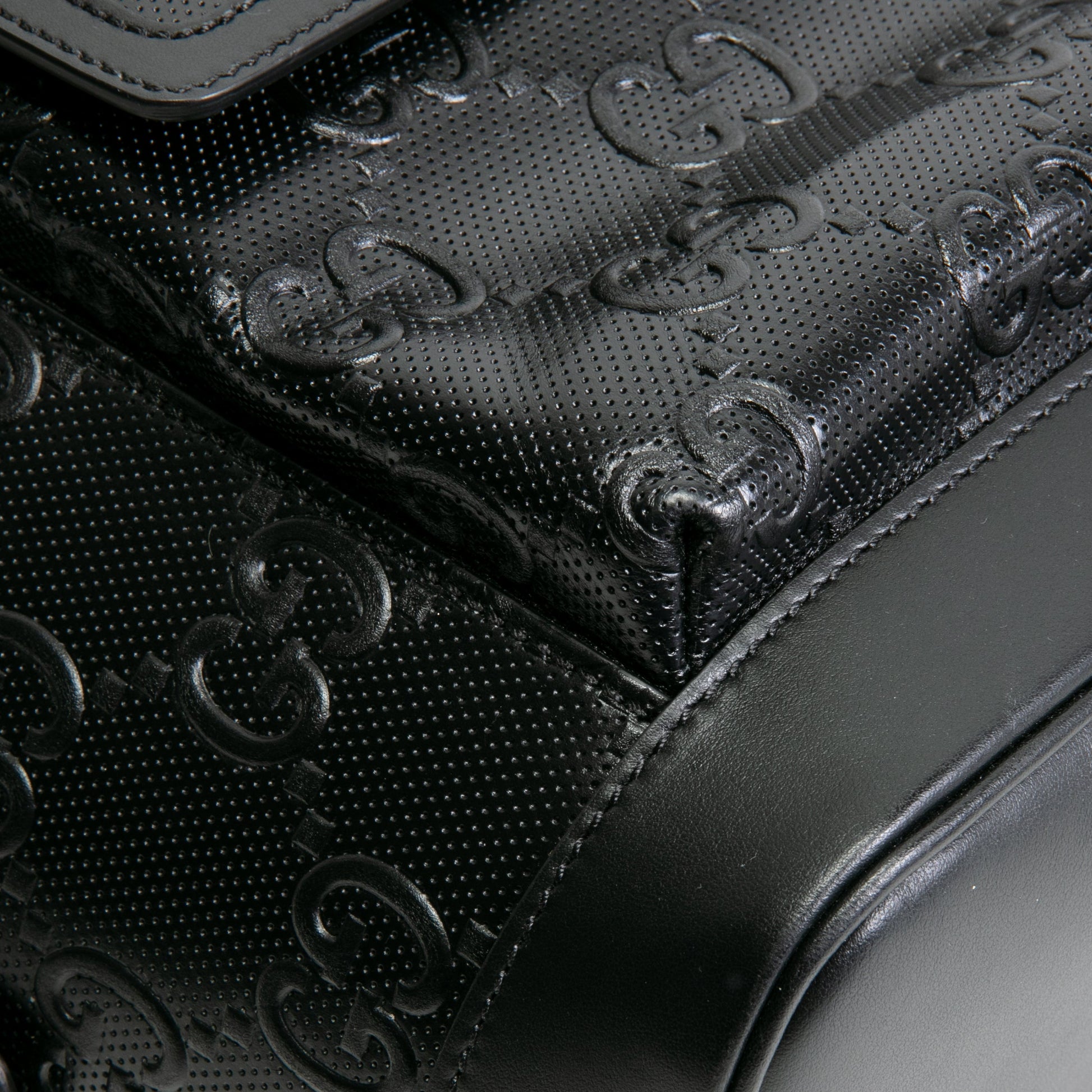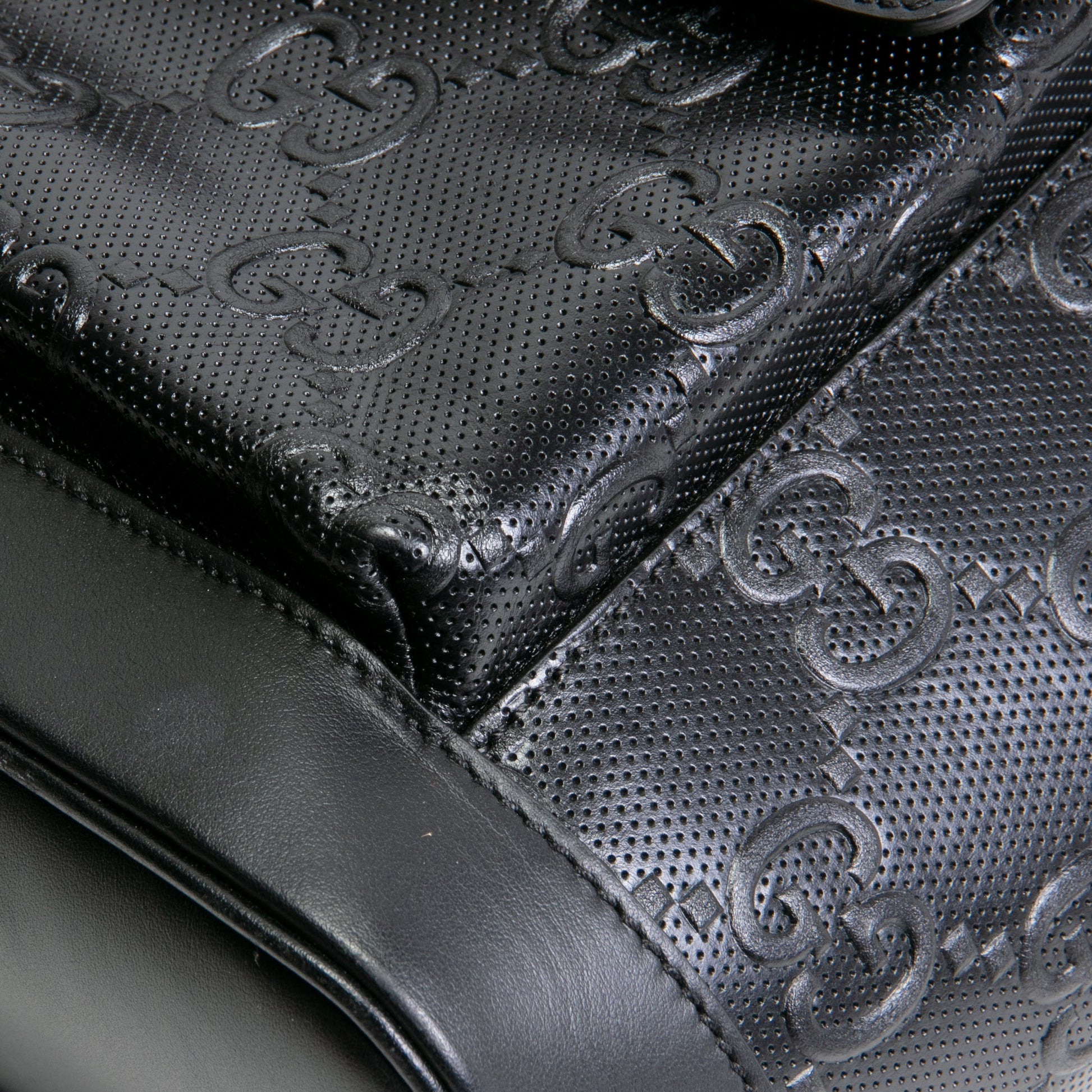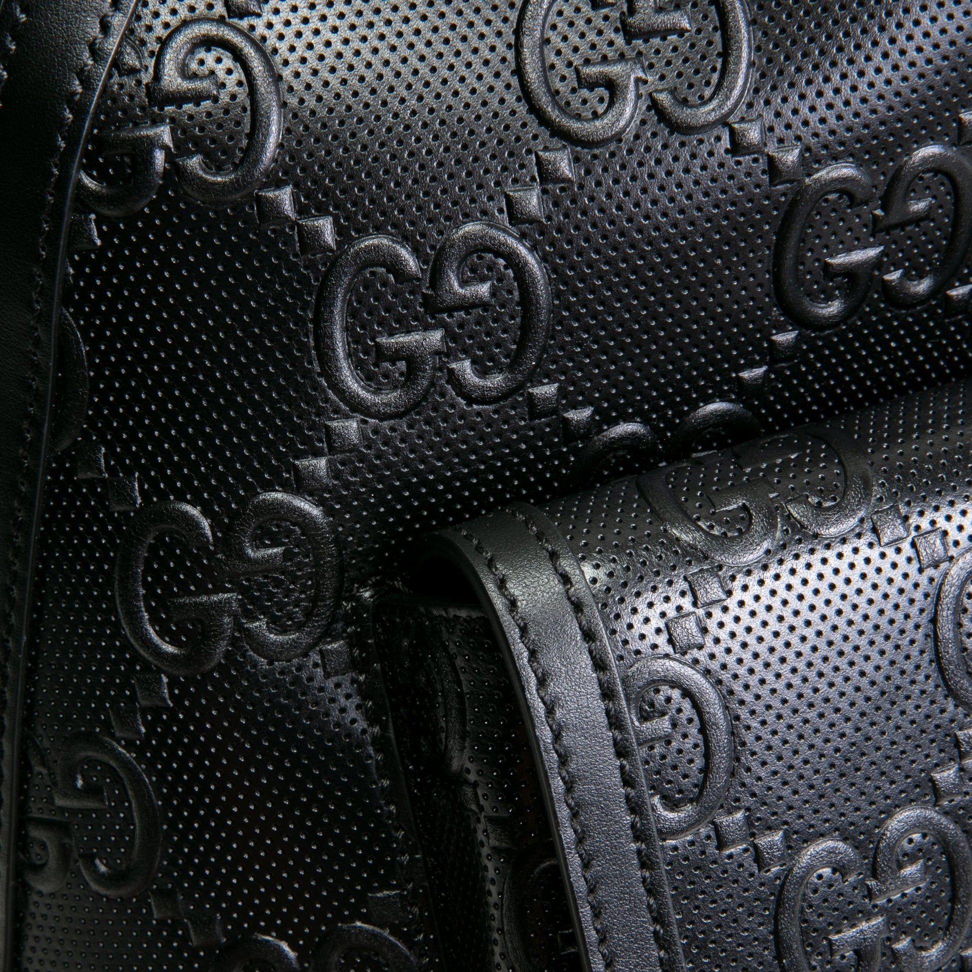 - Black Perforated GG Embossed Calfskin Leather