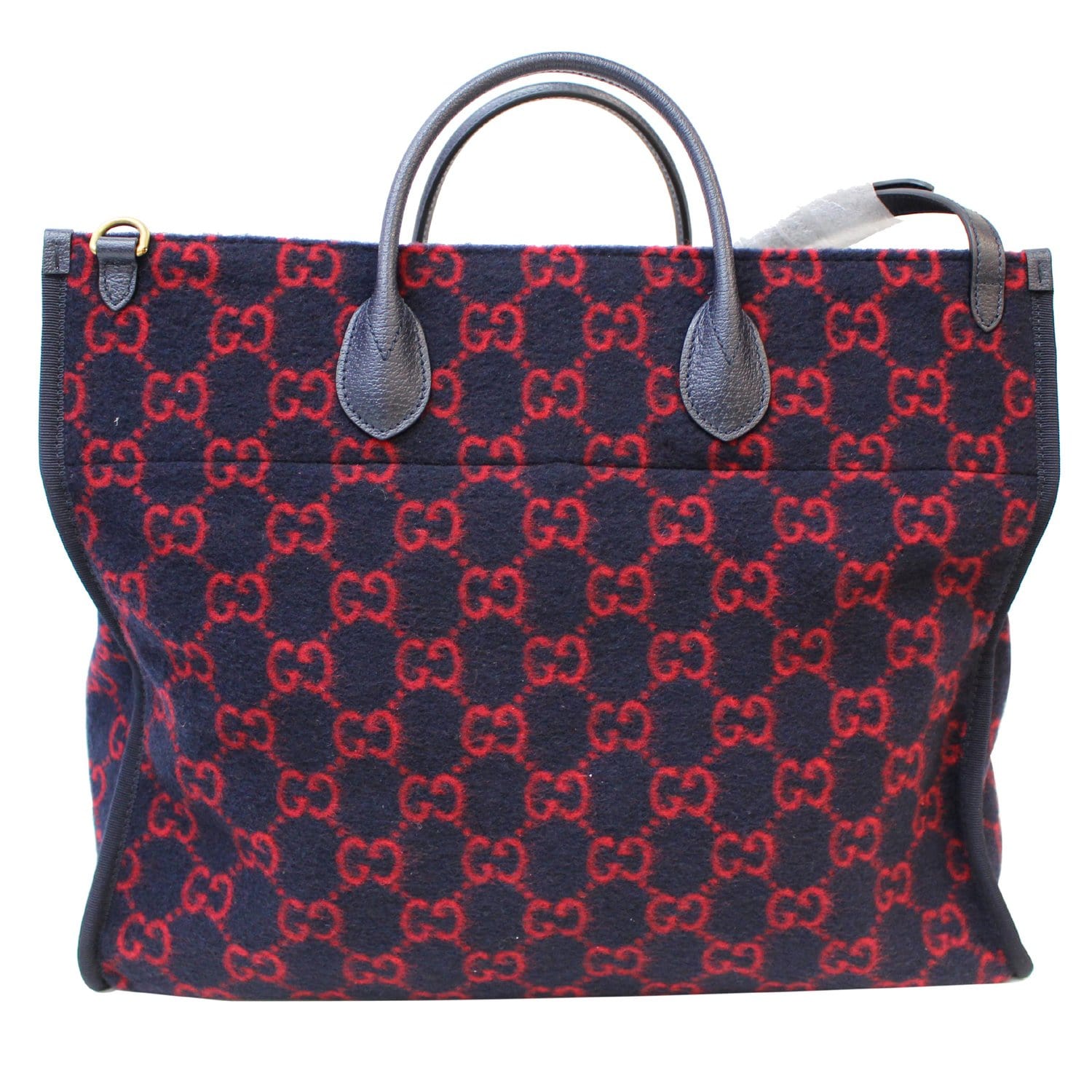 GUCCI GG Wool Tote Shoulder Bag Blue/Red 598169