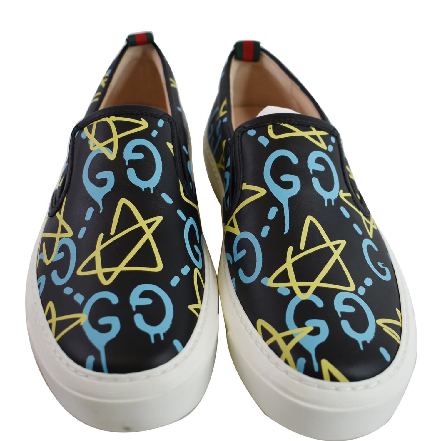 GUCCI Ghost Print Smooth Leather Slip-On Sneakers Black Size 9 - Last Call