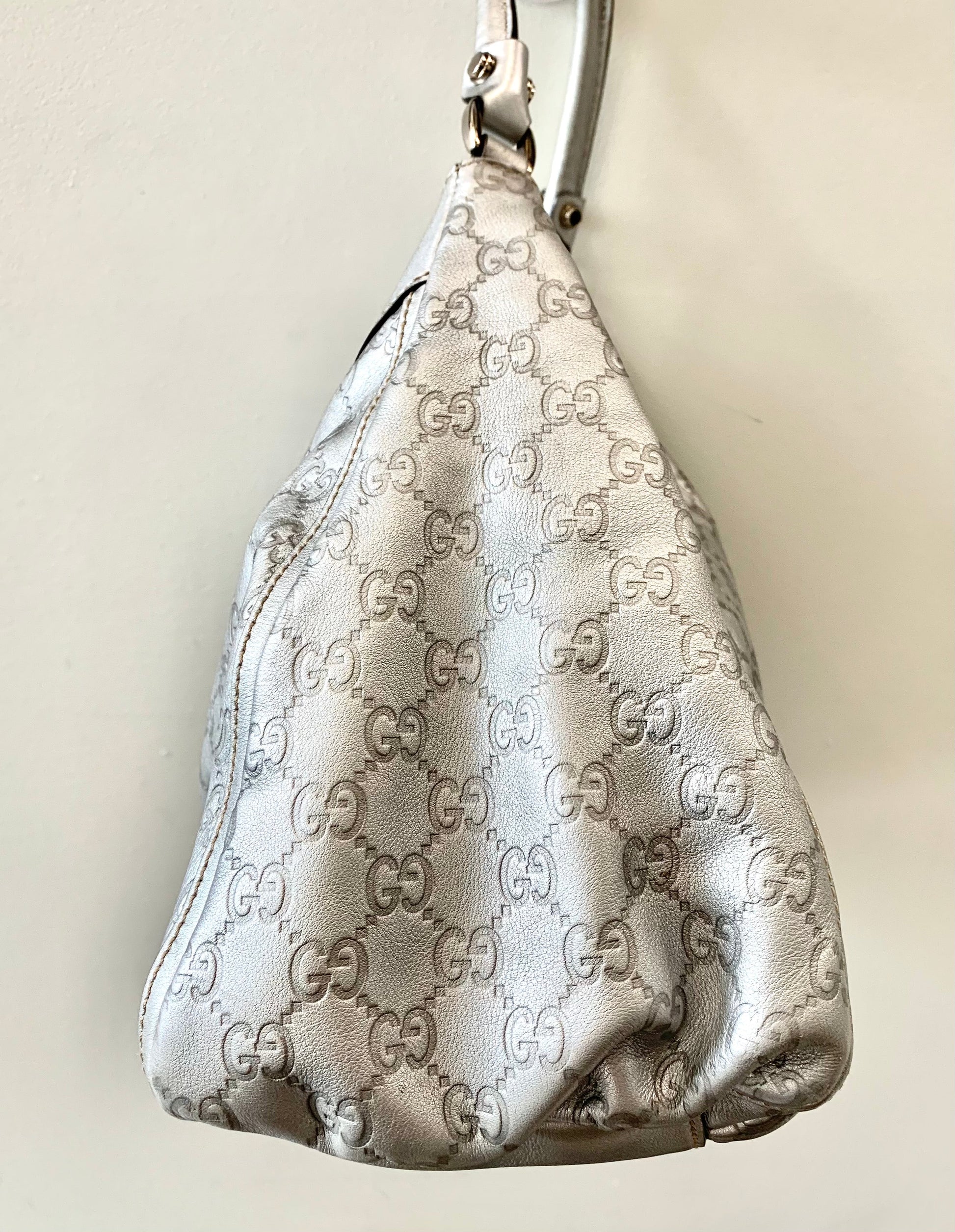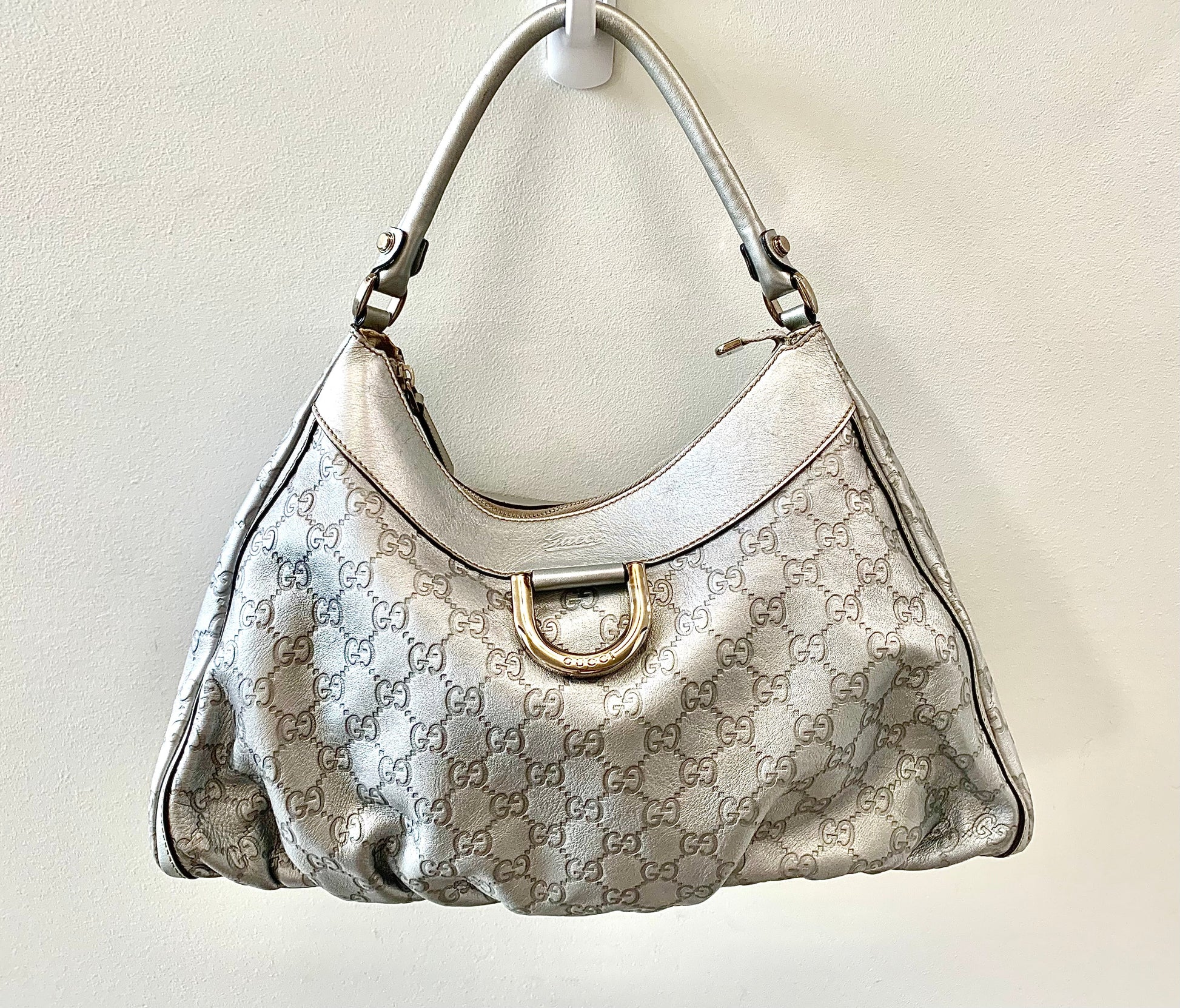 GUCCI Guccissima D Ring Silver Leather Hobo Bag