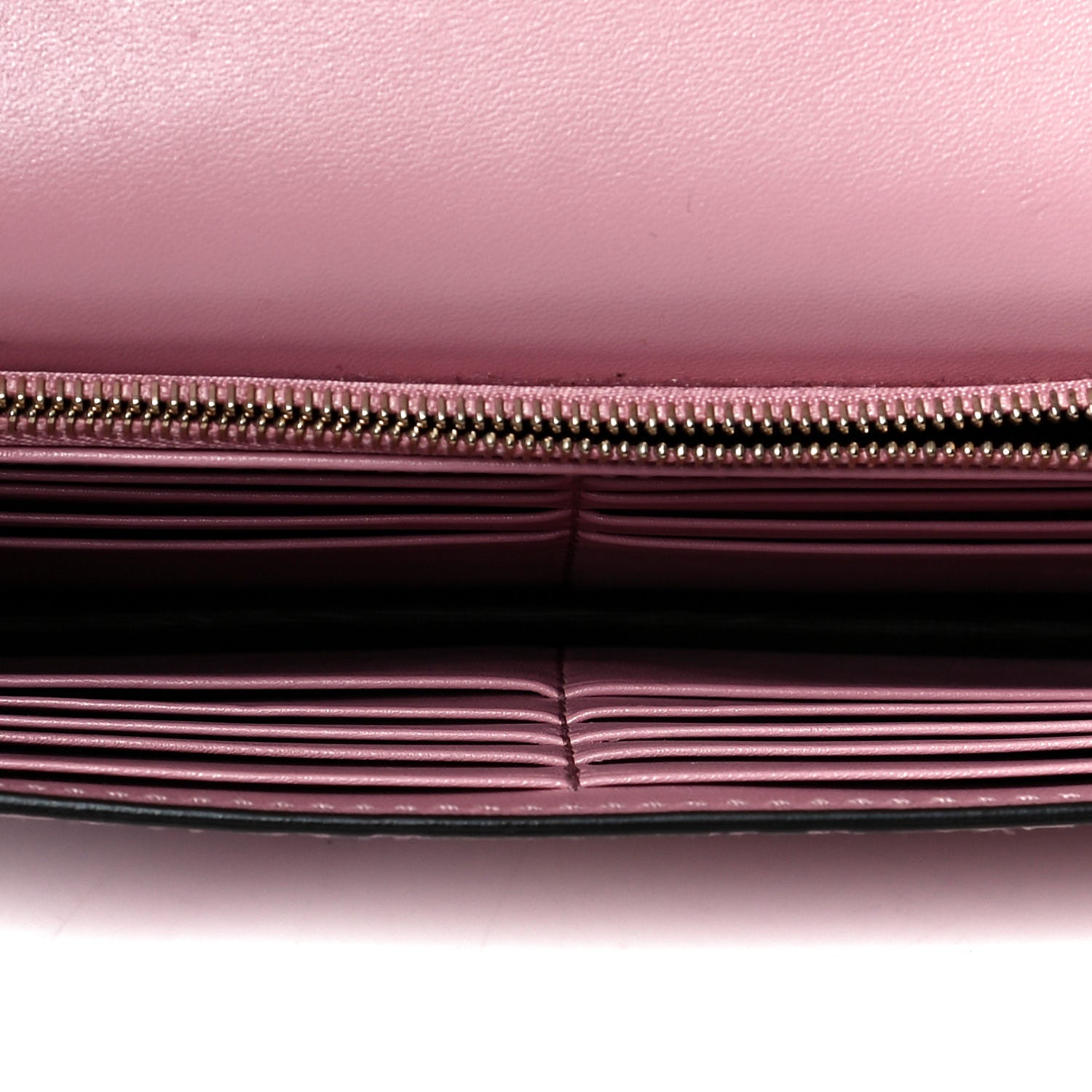 This stylish and practical wallet from the house of Gucci is designed in a gorgeous shade of pink from the brand's signature Guccissima leather. Featuring a flap silhouette, this wallet is secured with a snap-button closure and comes with the iconic 'GG' logo on the front. It opens to a neatly compartmentalized interior with ample slots for your cards and currency and a zip pocket. it is finished with gold-tone hardware and a chain-link strap.