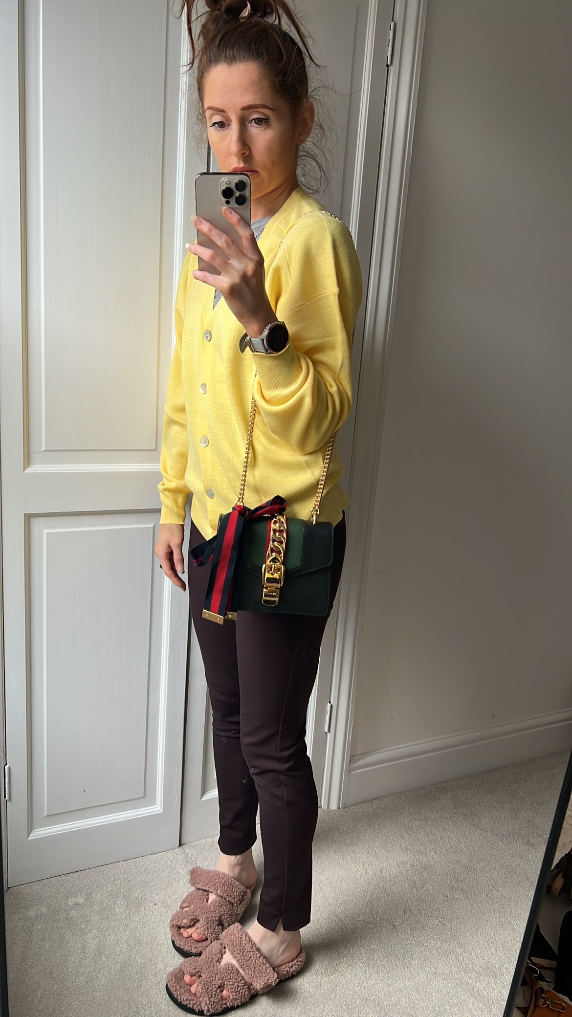 Gucci Sylvie Mini Chain Bag in Navy with gold hardware. The sophisticated Sylvie mini bag is structured in shape and features nylon web detailing and gold chain and buckle. Made in a smooth, firm leather and is ideal if you prefer navy to black. Fairly small in size but fits the essentials. Can be carried over shoulder using chain strap or striped ribbon strap. Cross body may be possible if small / short in size.
