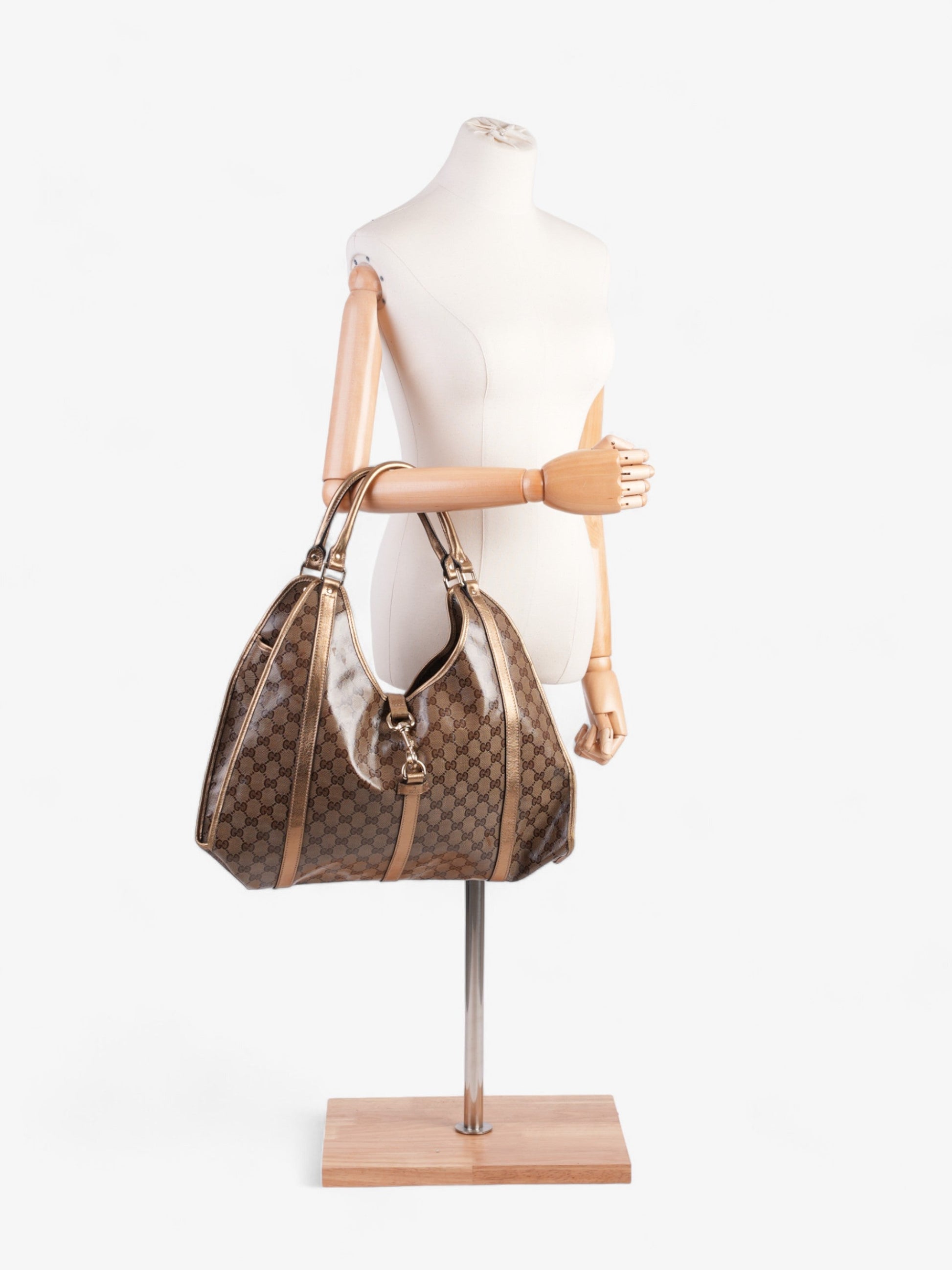 Gucci Crystal Jackie Gold GG Supreme Patent Leather