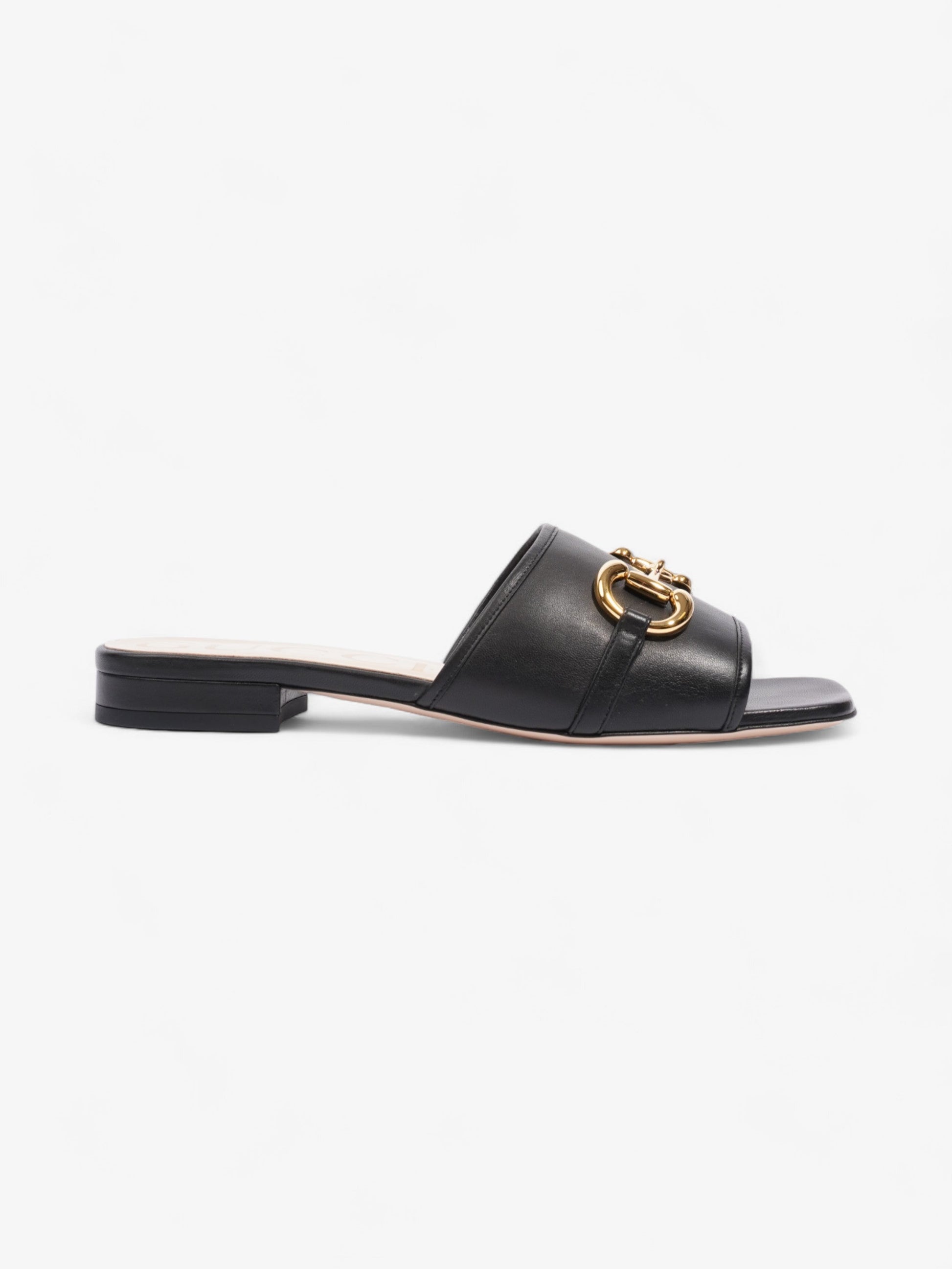 Gucci Horsebit Slides Black / Gold Leather EU 39 UK 6