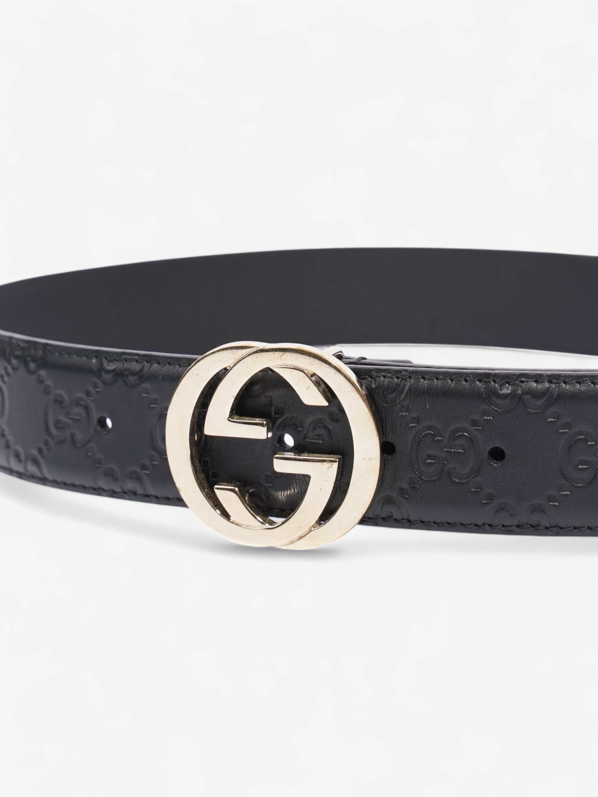 Gucci Interlocking G Belt Black / Light Gold Leather 80cm / 32"