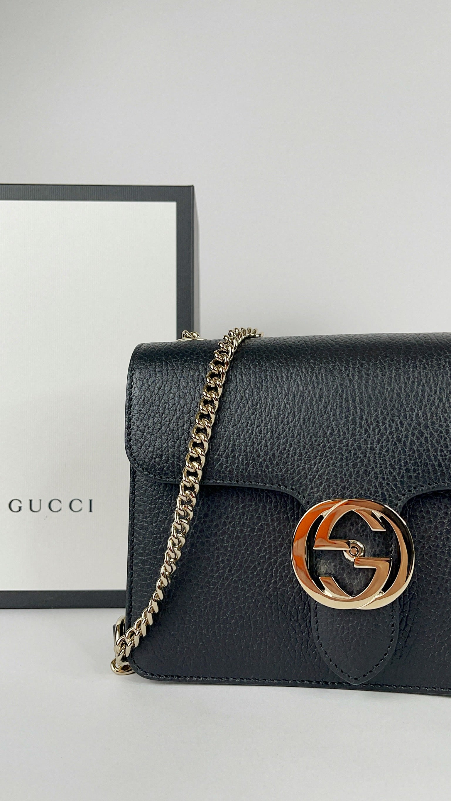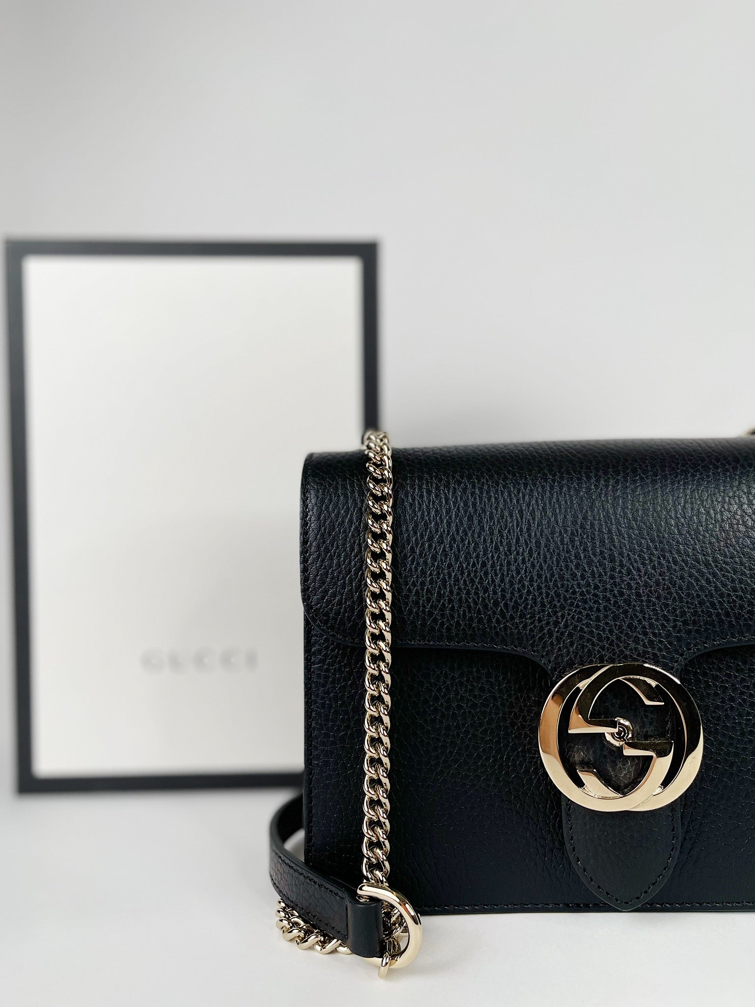 - Light gold-tone interlocking GG logo clasp