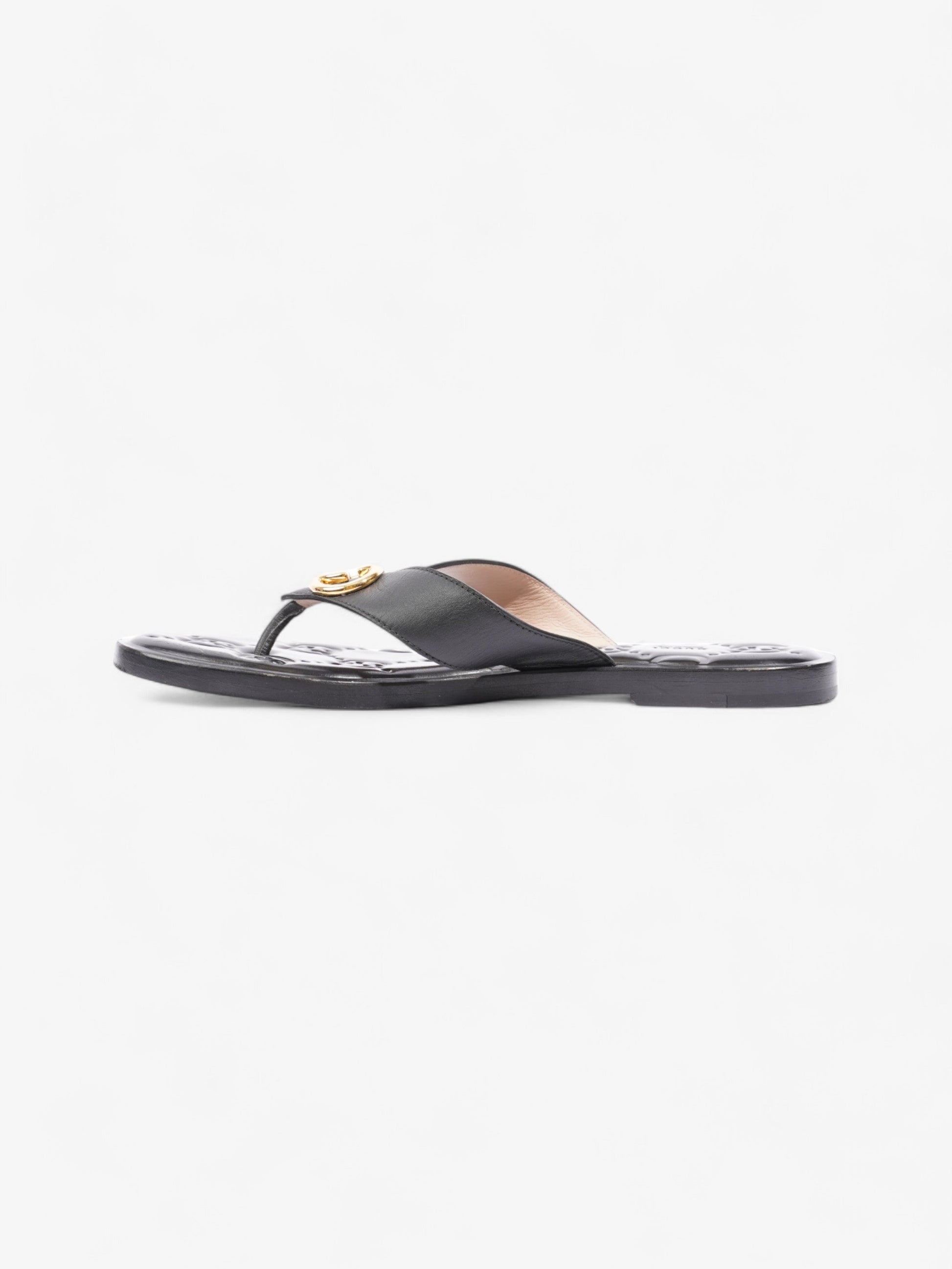 Gucci Interlocking GG Thong Sandals Black / Gold Leather EU 40.5 UK 7.5