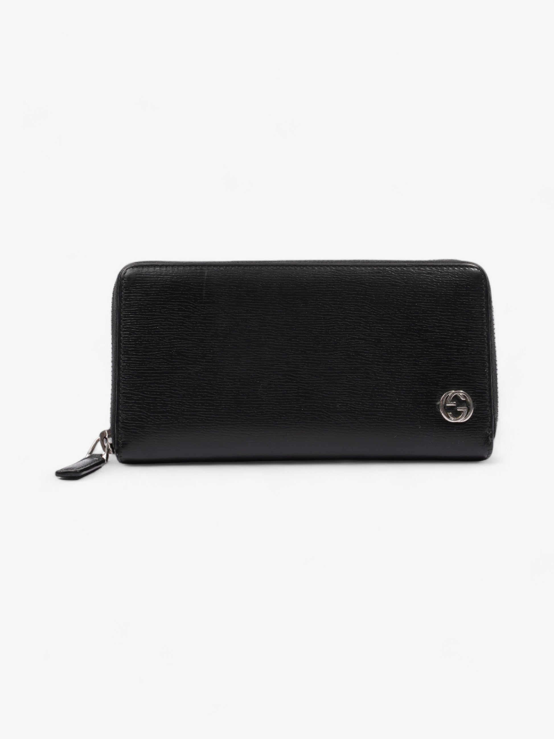 Gucci Interlocking Zip Round Wallet Black Black Leather