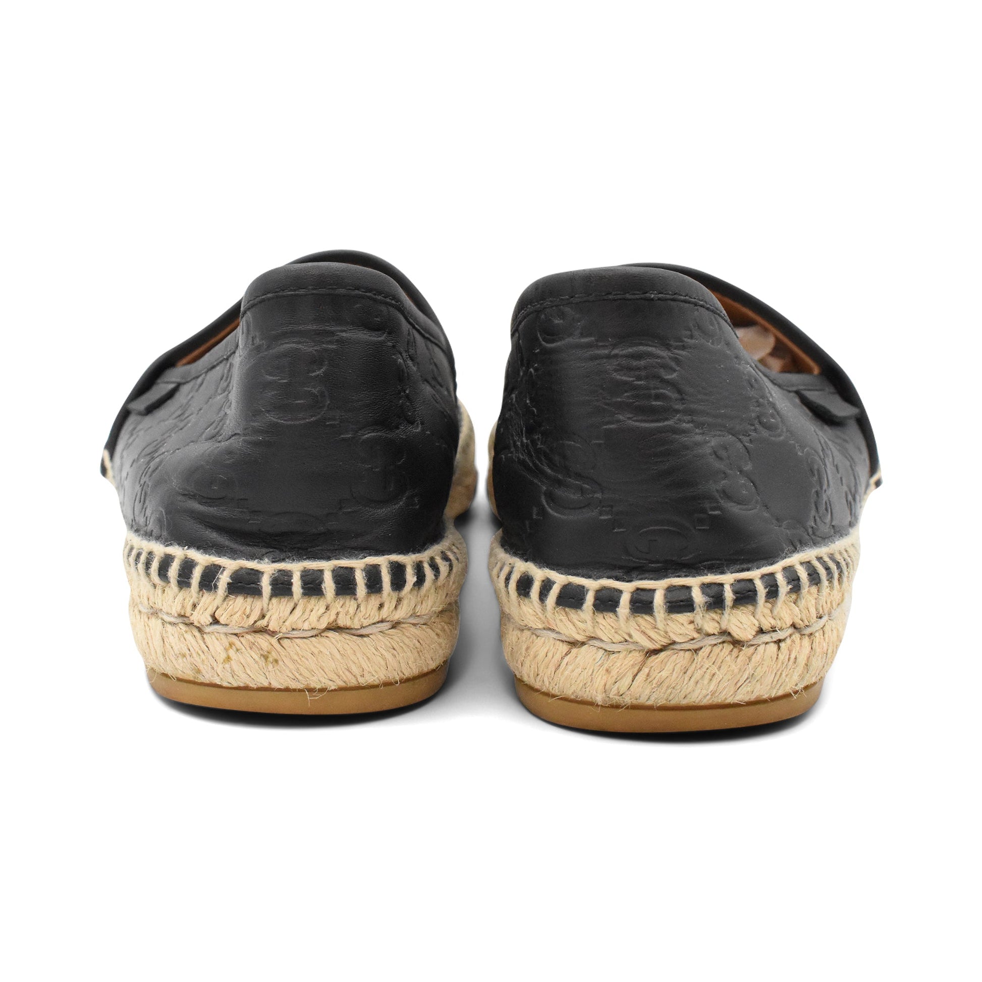Gucci espadrilles in black Guccissima monogram embossed leather with braided twin soles.