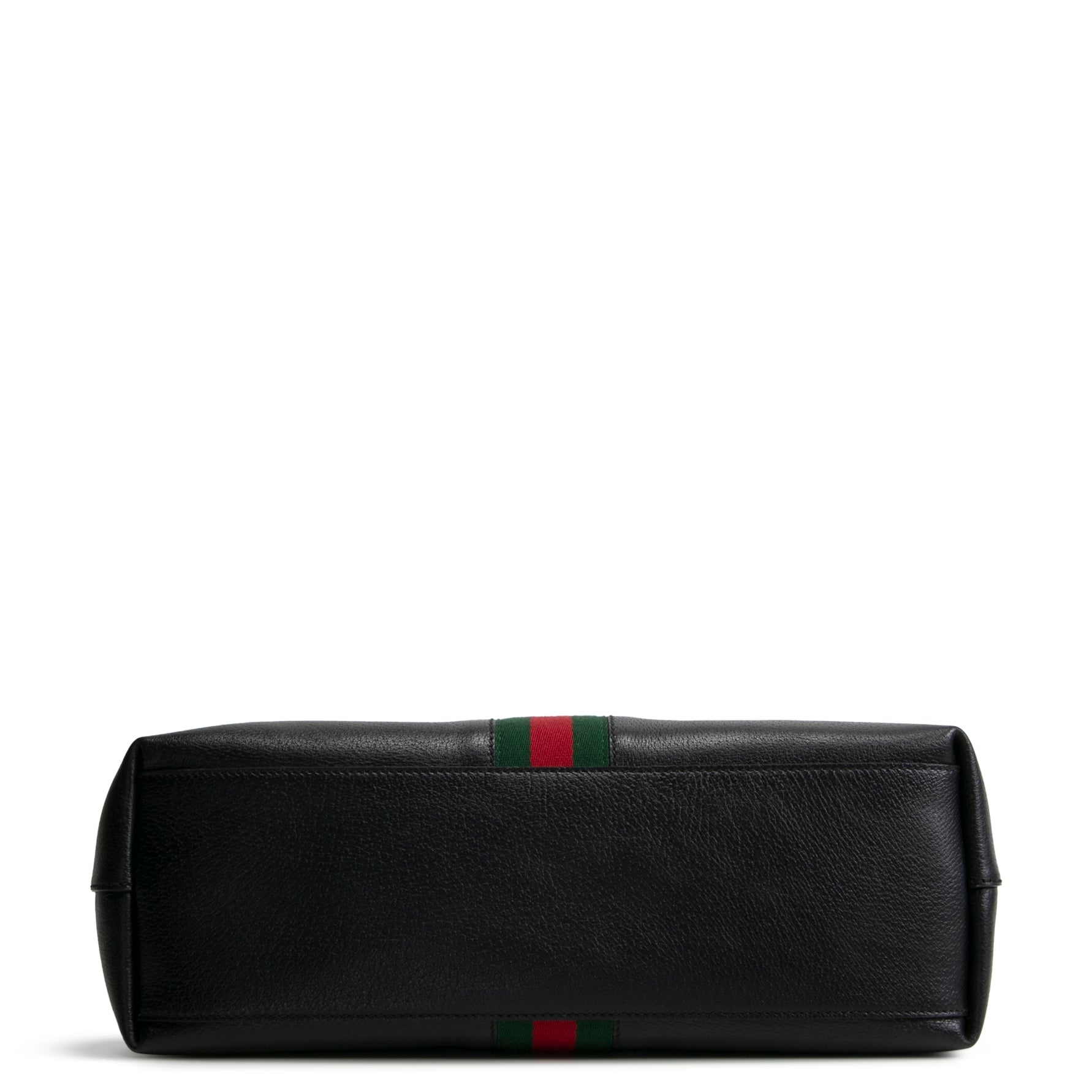 GUCCI Leather Ophidia Web Medium Tote - Black