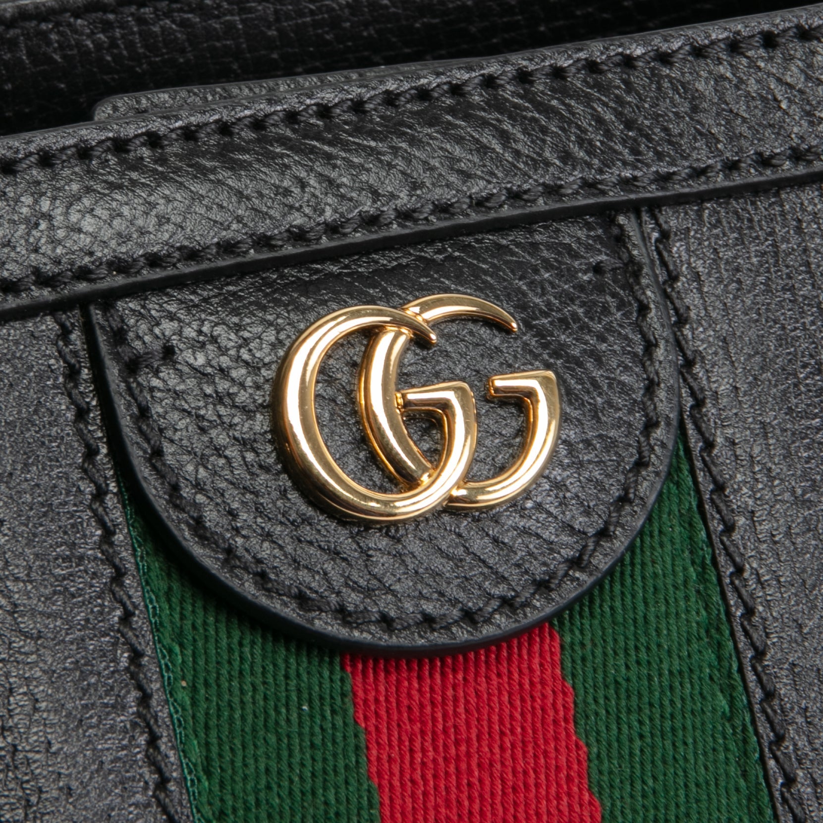 - Gucci Leather Ophidia Web Medium Tote - Black