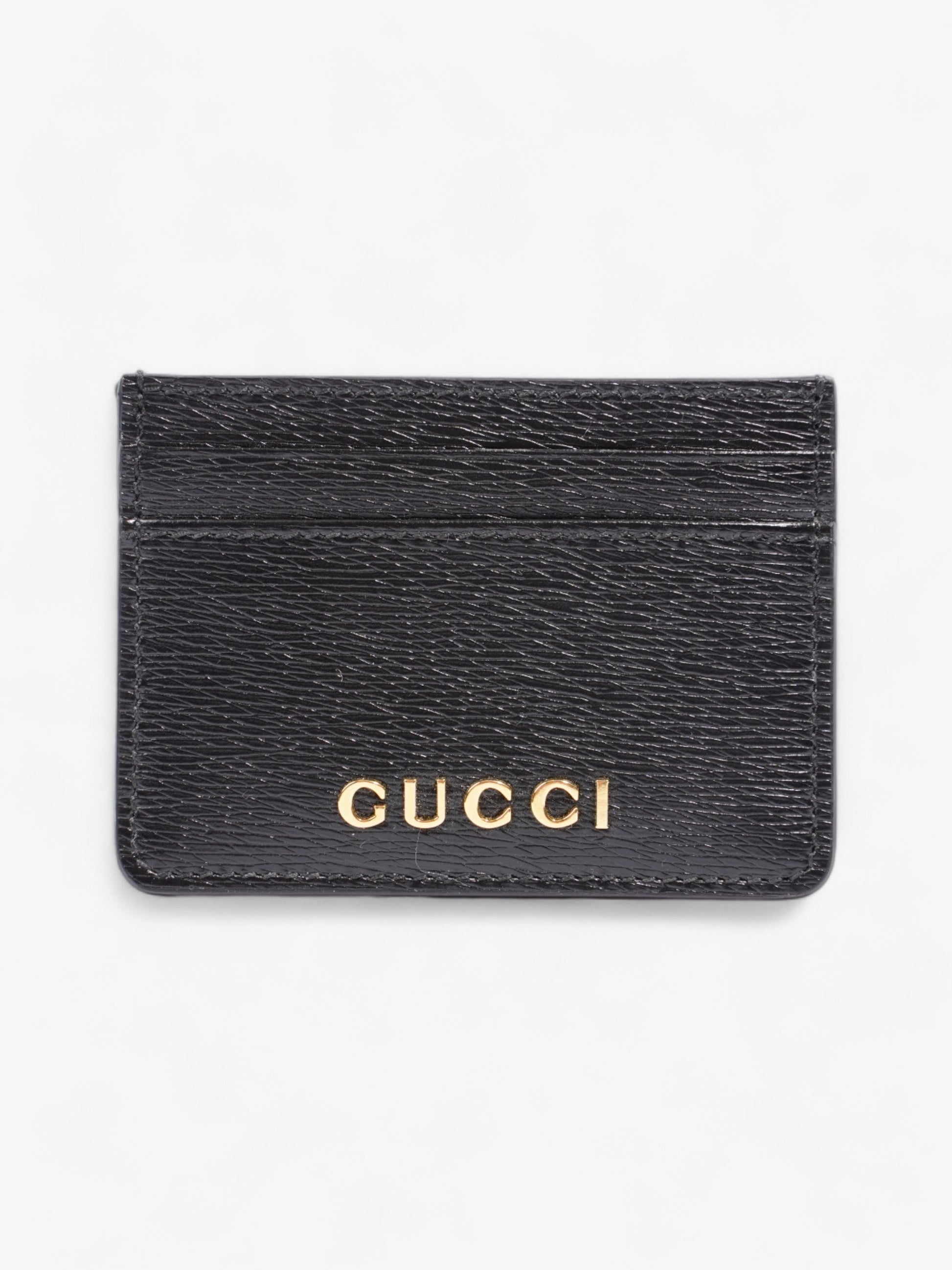 Gucci Logo Card Holder Black / Gold Leather