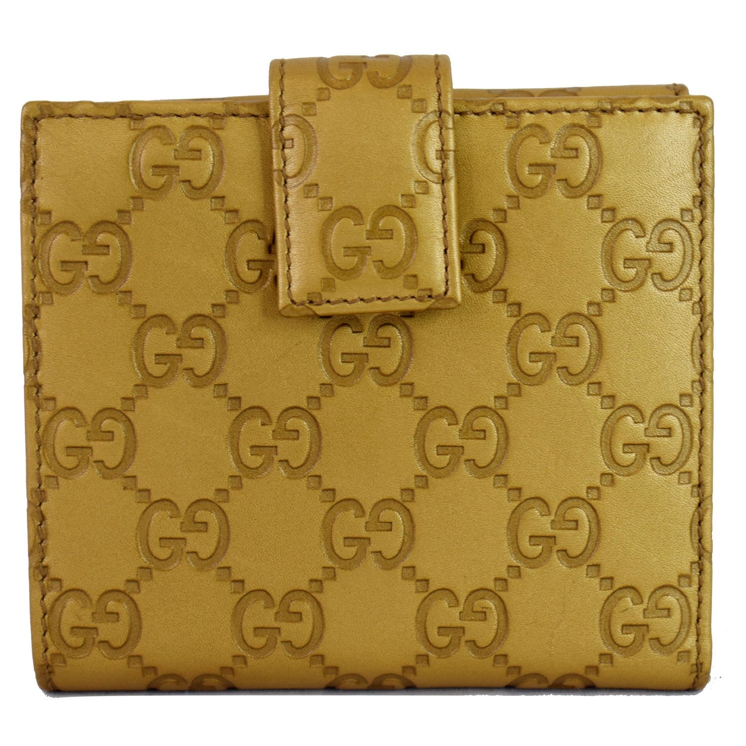 GUCCI Lovely Heart Guccissima Leather French Flap Wallet Gold 245727