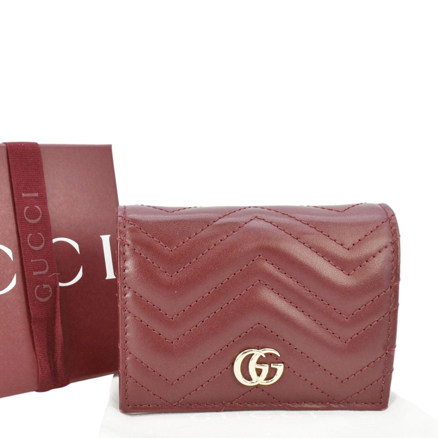 The GUCCI Marmont GG Matelassé Card Case Wallet in red features quilted leather with the iconic GG logo in gold-tone hardware. Compact and stylish, it’s perfect for organizing cards and essentials with a bold touch.