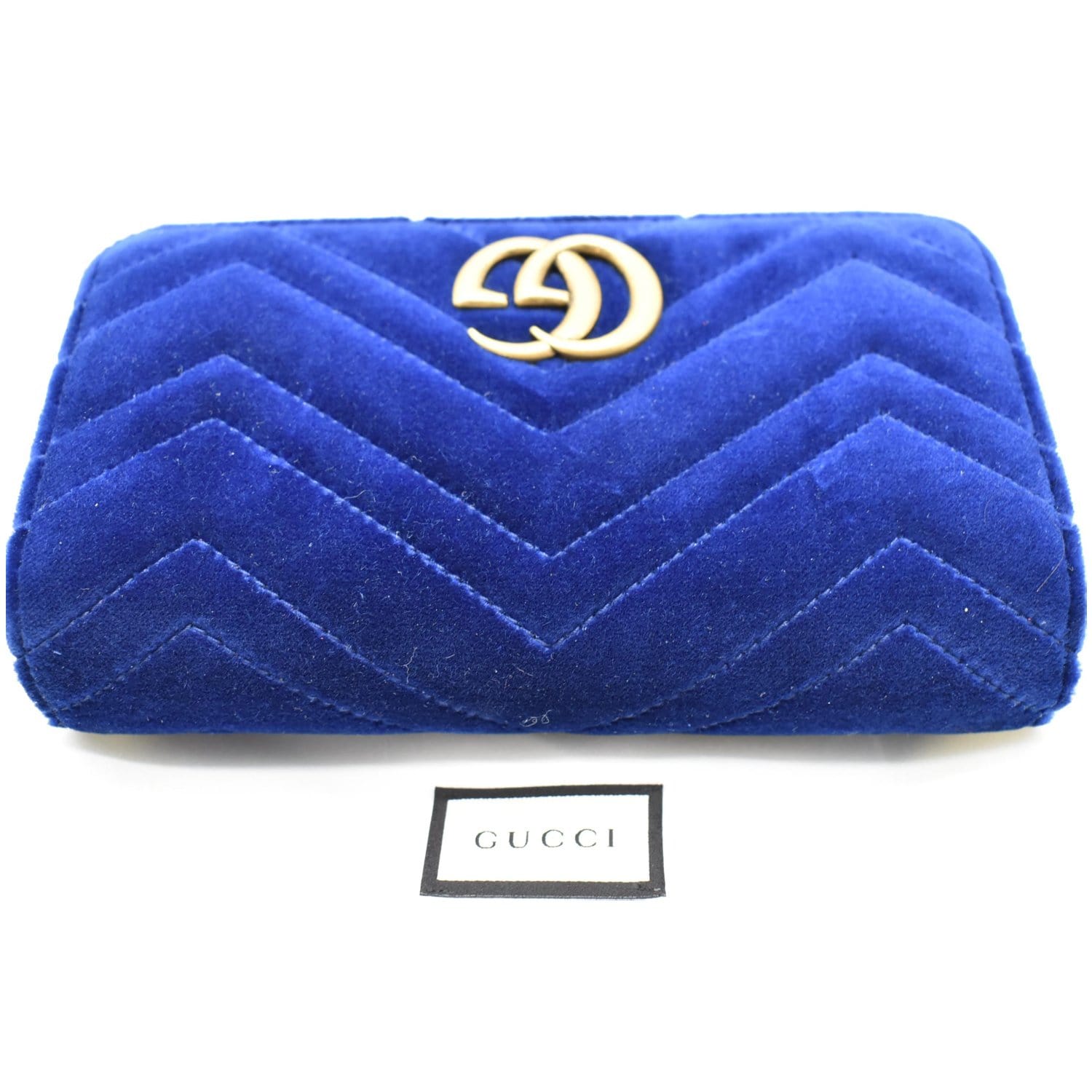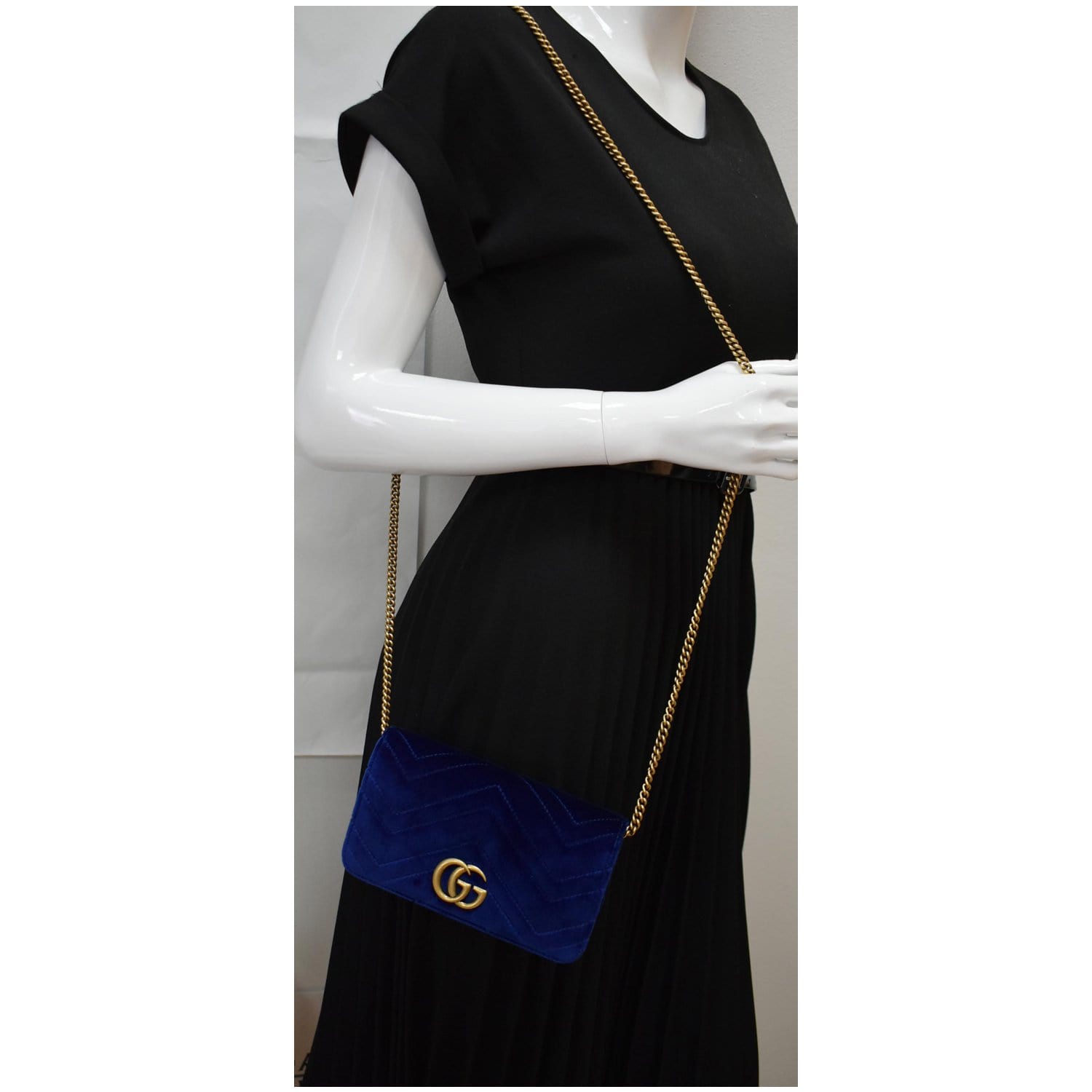 GUCCI Marmont GG Mini Velvet Matelasse Crossbody Bag Blue 488426