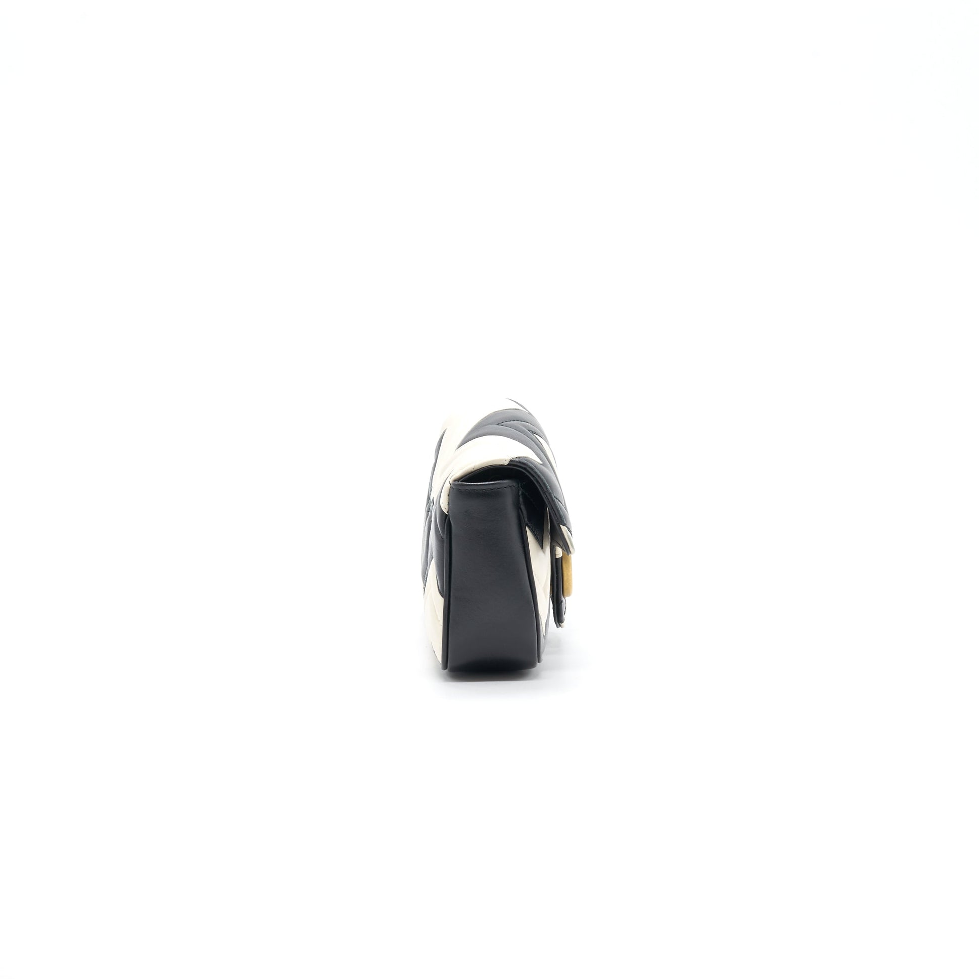 Pressed mark on the back heart shape, light scratches under flap, slight scratches
