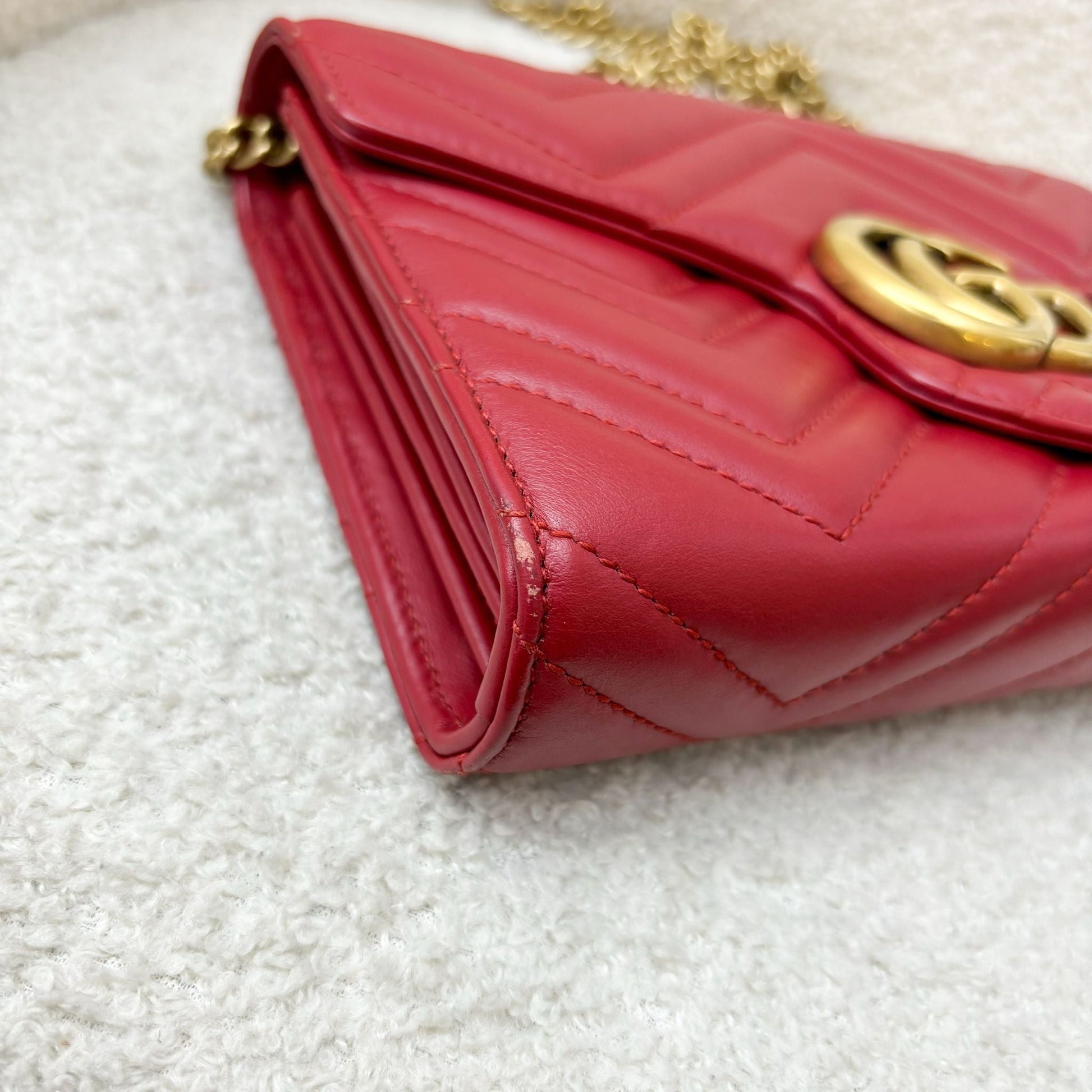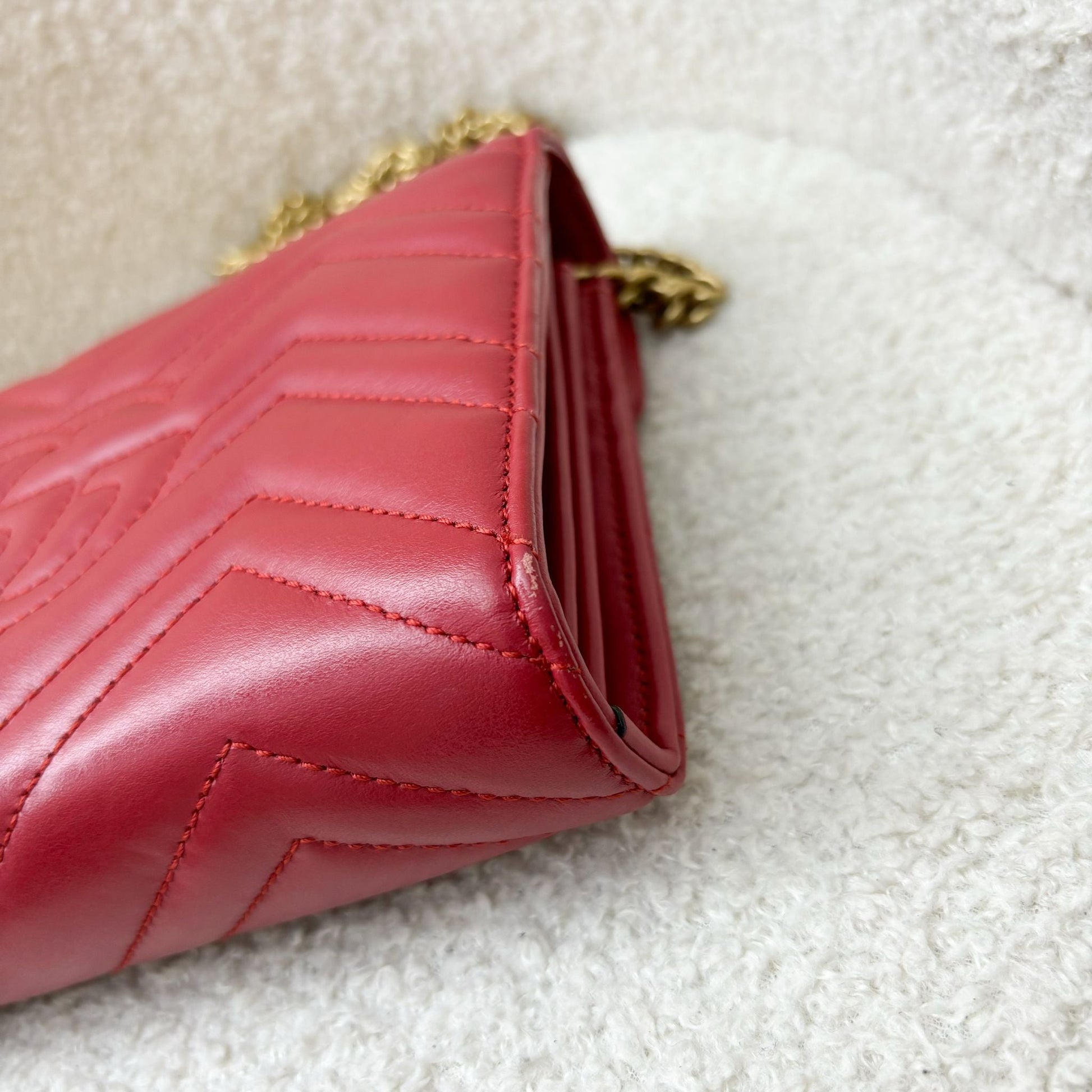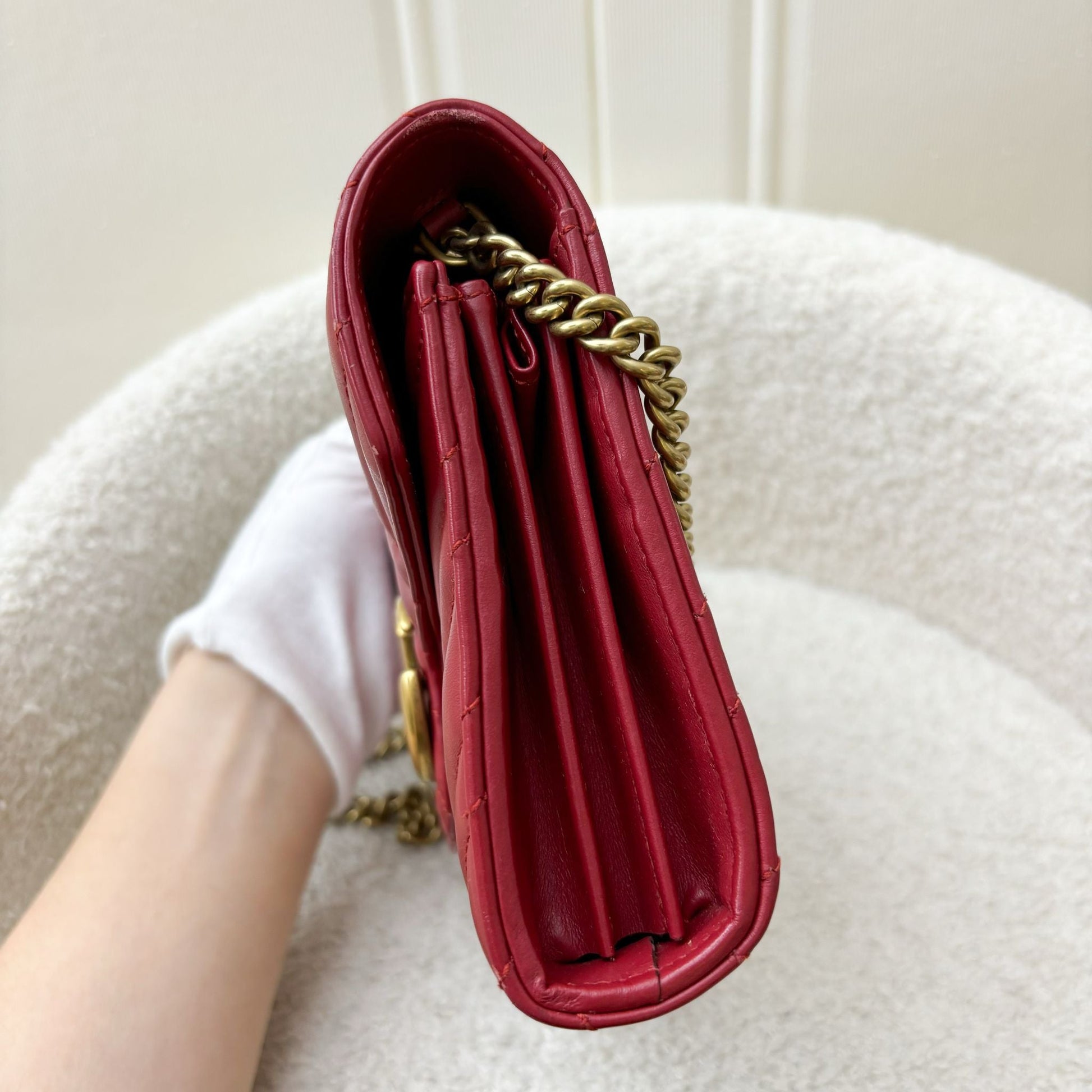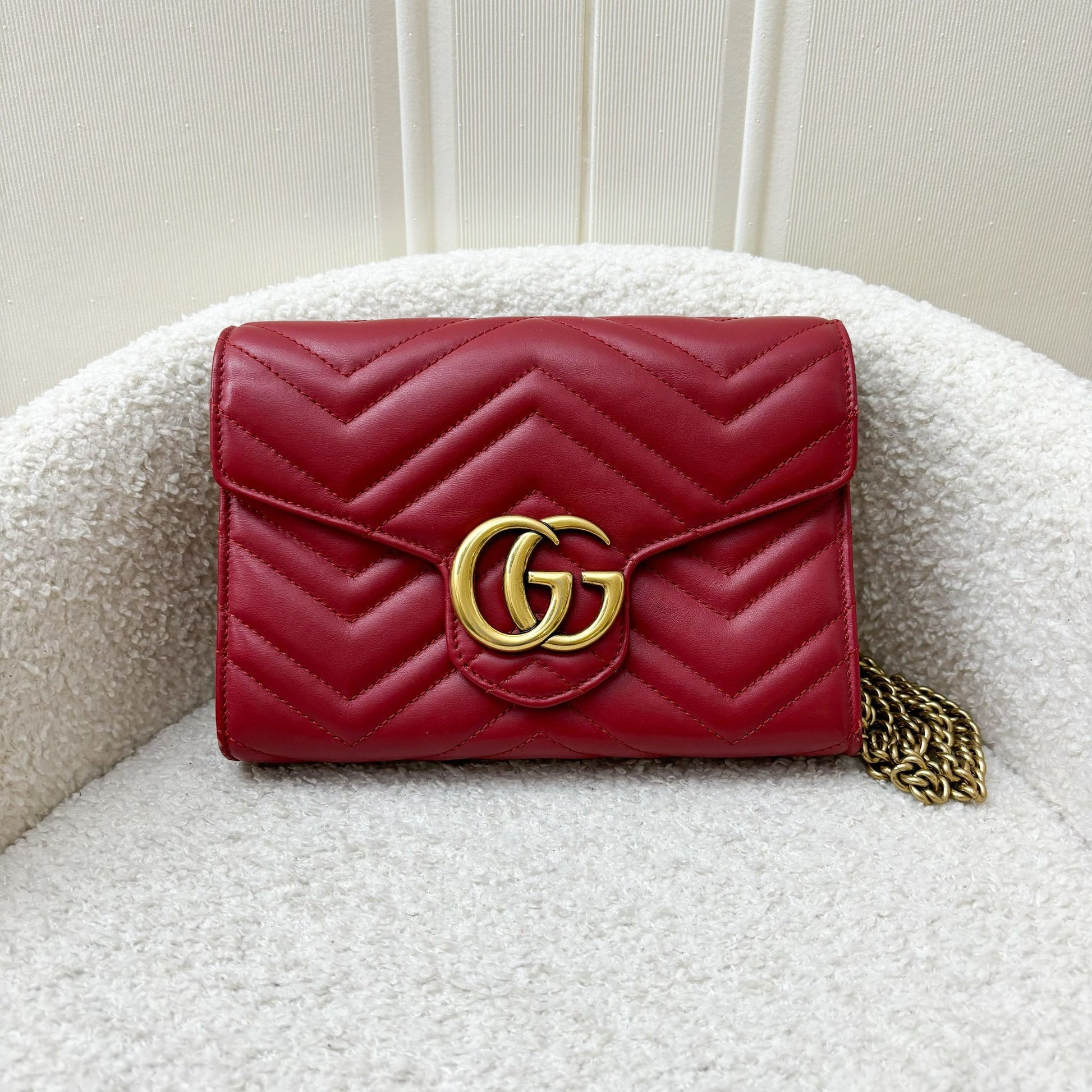 Gucci Marmont Wallet on Chain WOC in Red Calfskin AGHW
