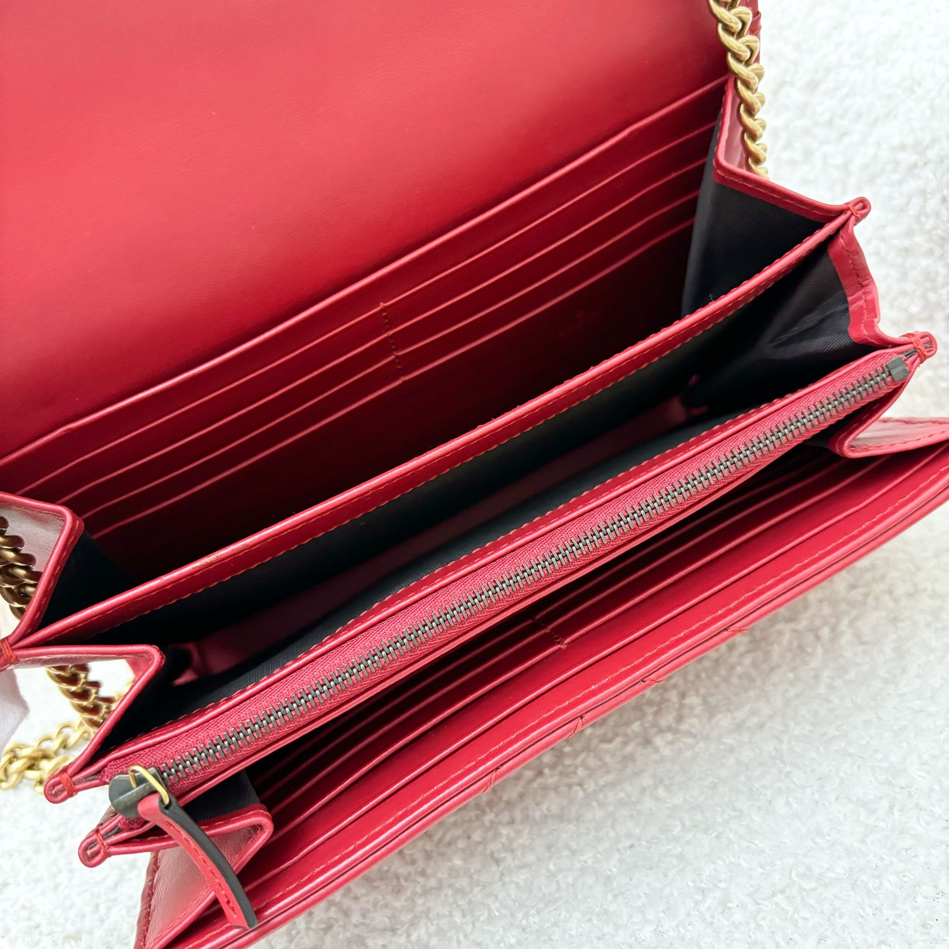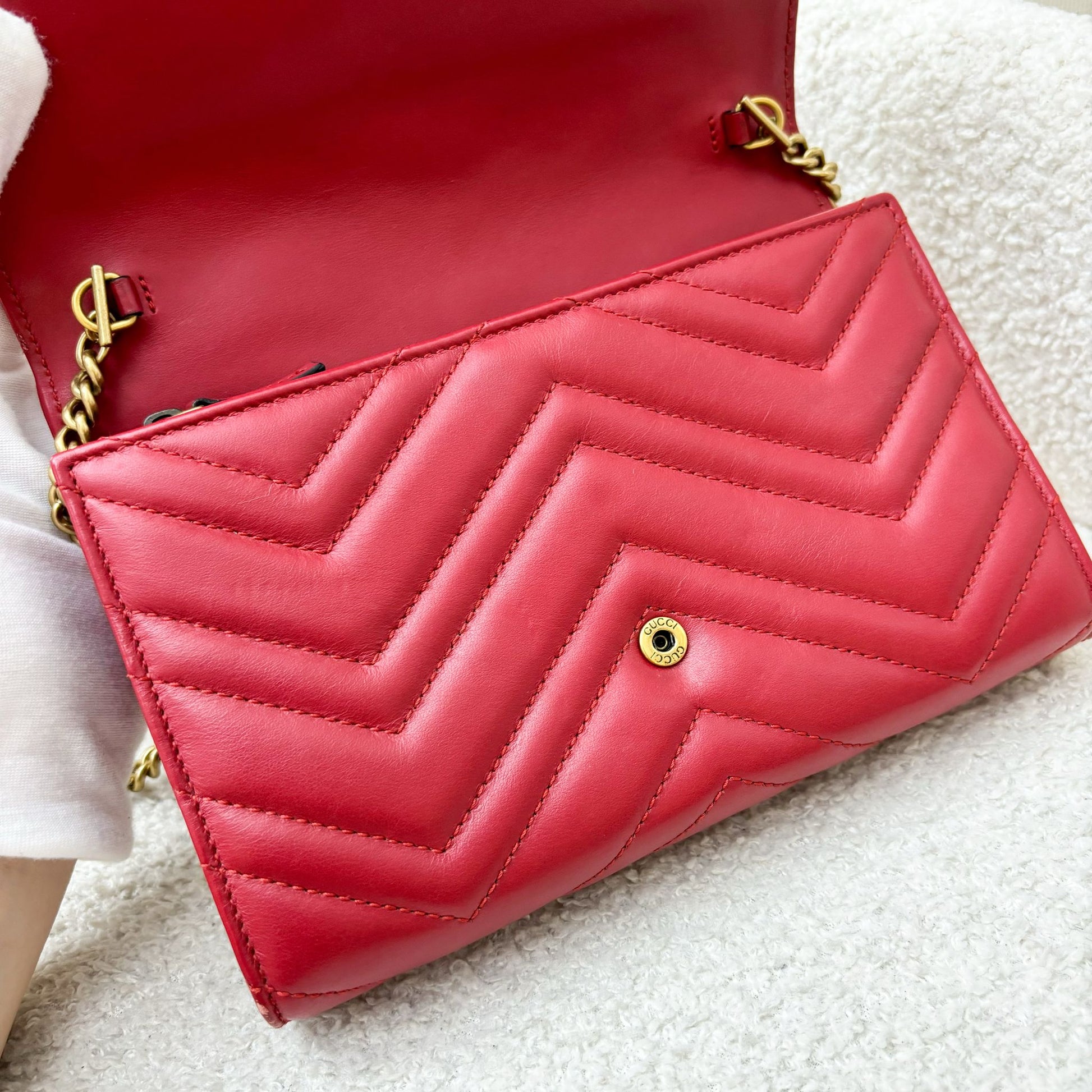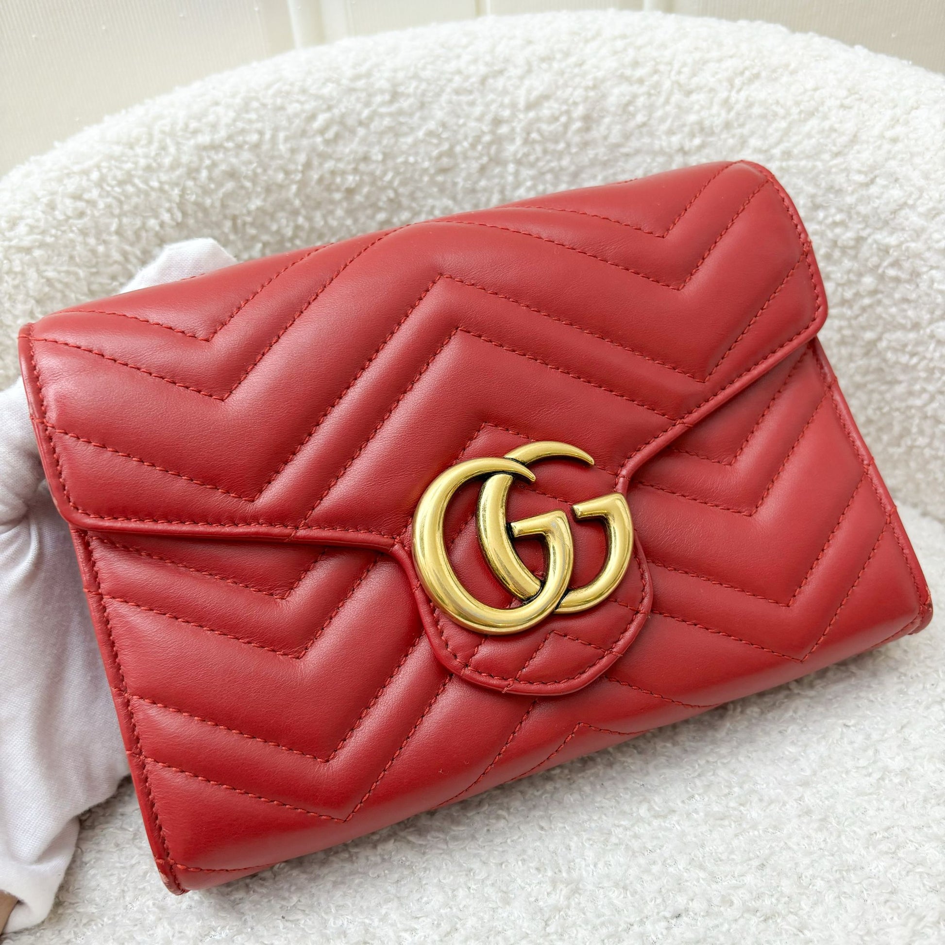 Gucci Marmont Wallet on Chain WOC in Red Calfskin AGHW