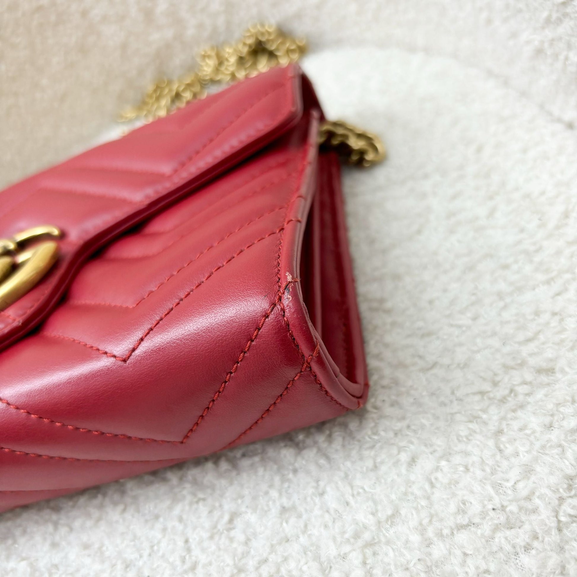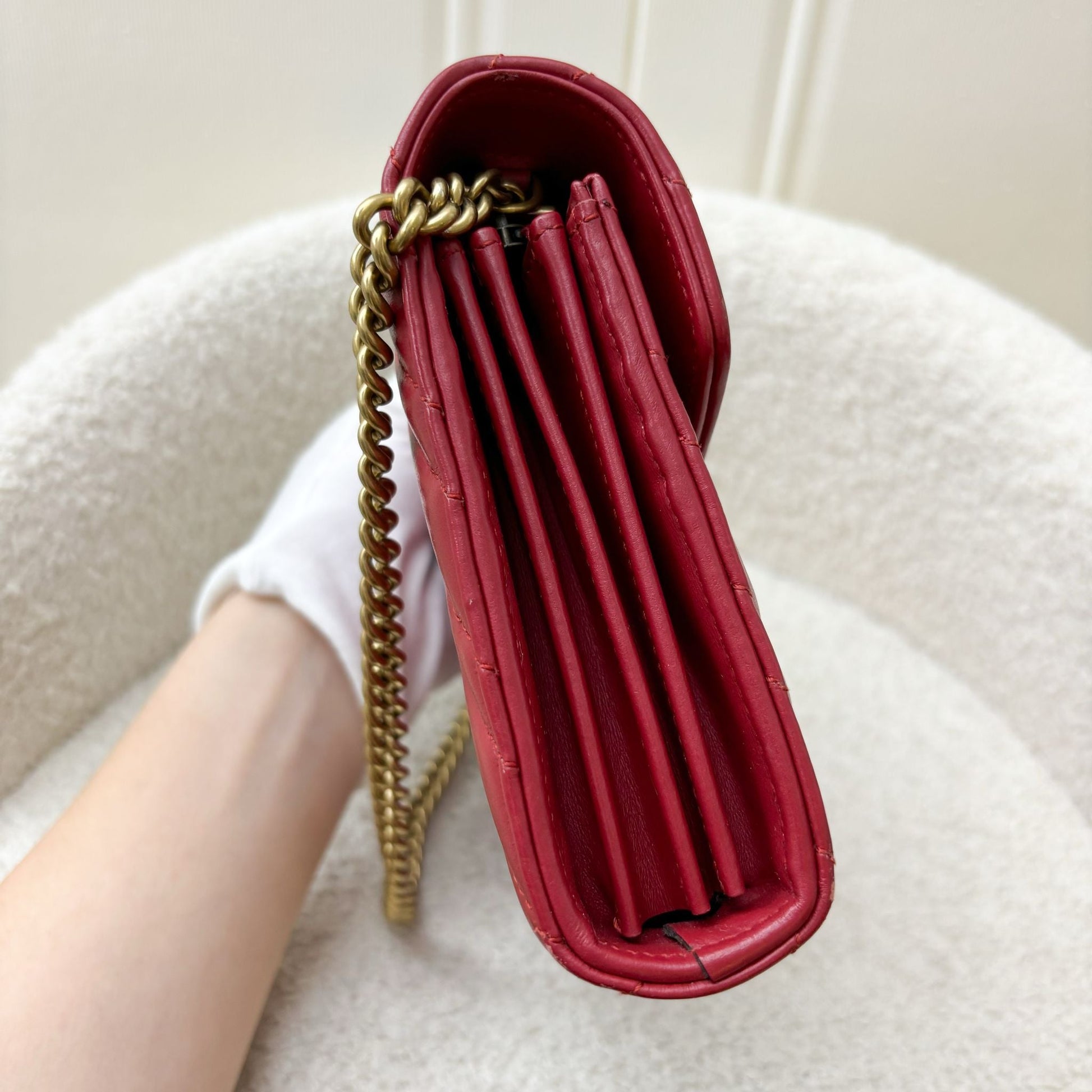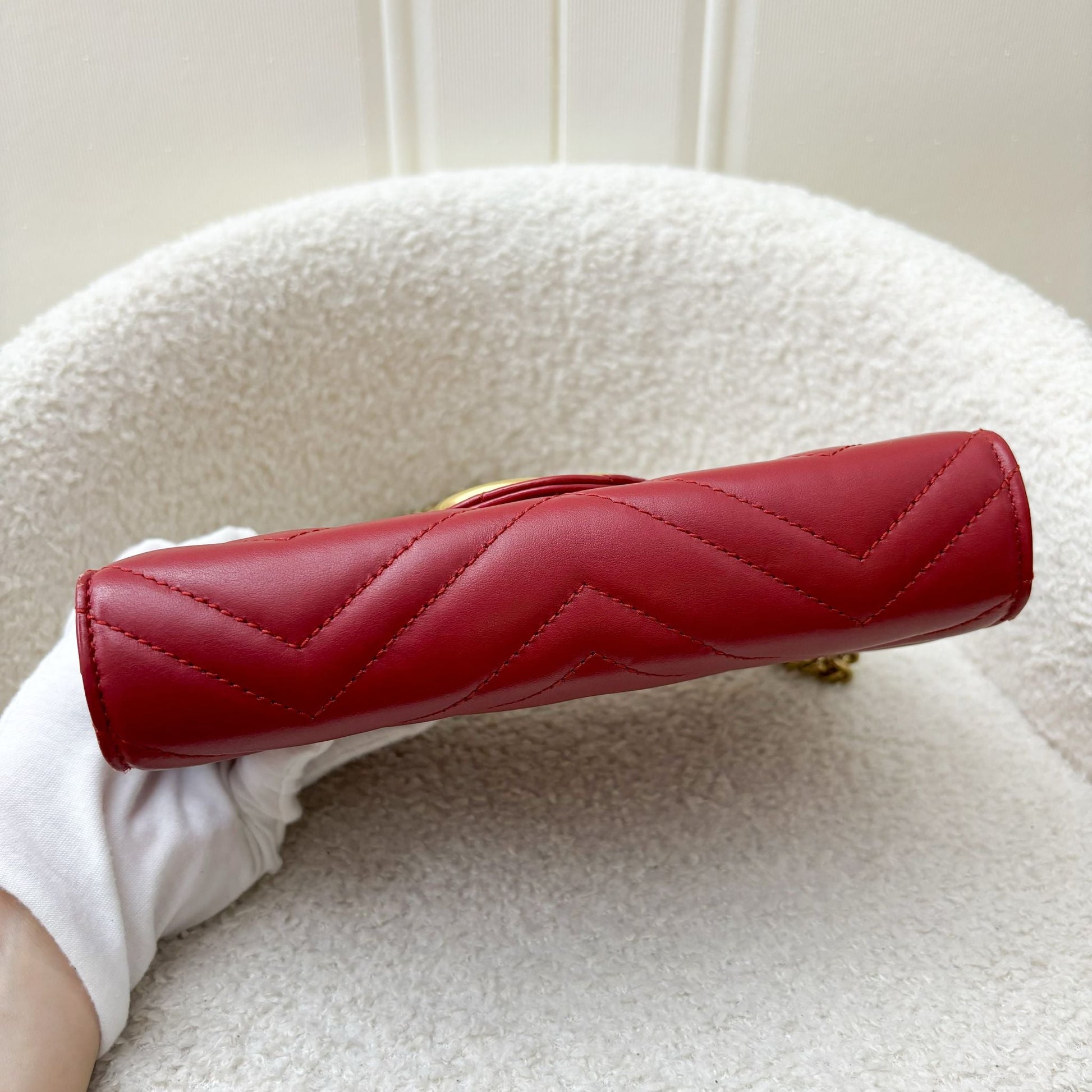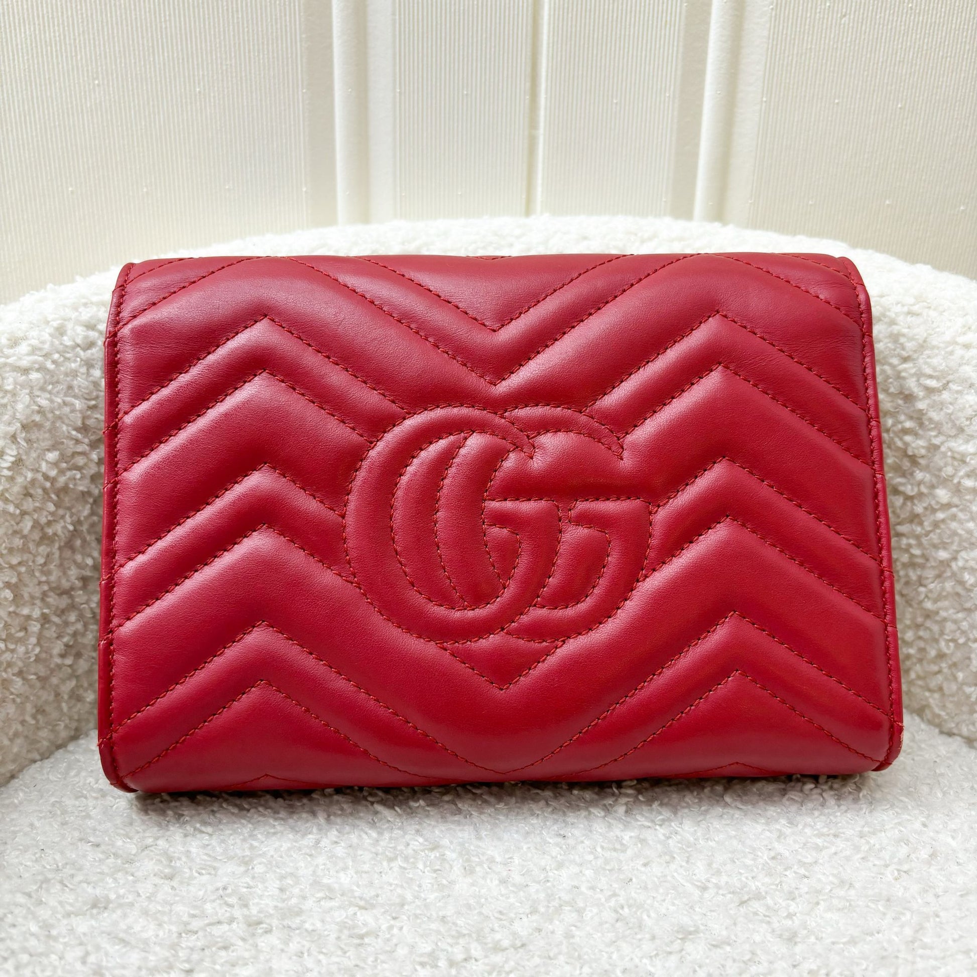 Gucci Marmont Wallet on Chain WOC in Red Calfskin AGHW
