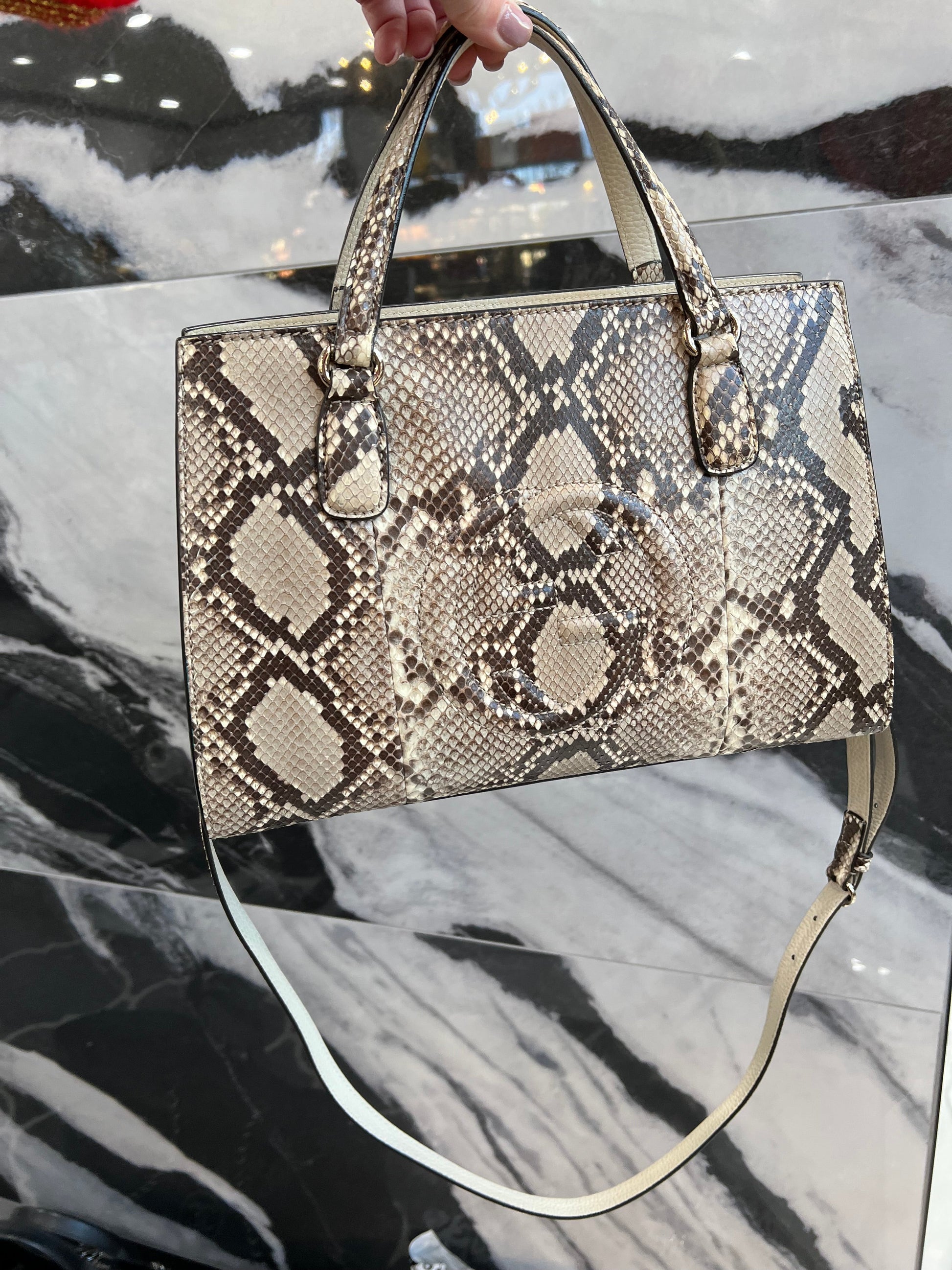 Python Leather, GG Logo, Two Handles & Long Strap.