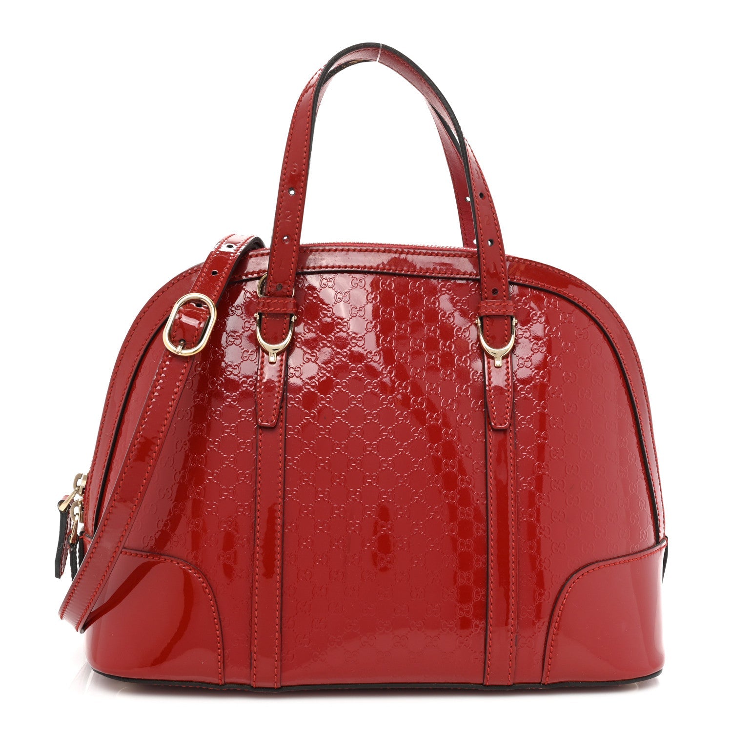 GUCCI Domed top handle bag crafted from glossy MicroGuccissima patent leather in a stunning red hue.