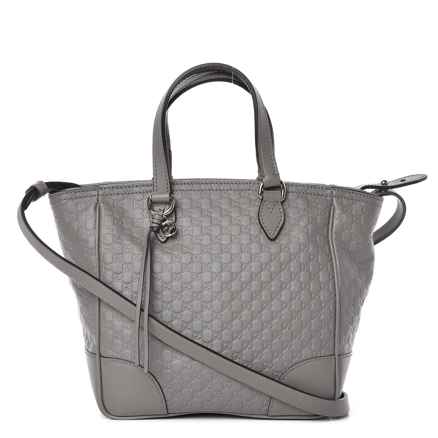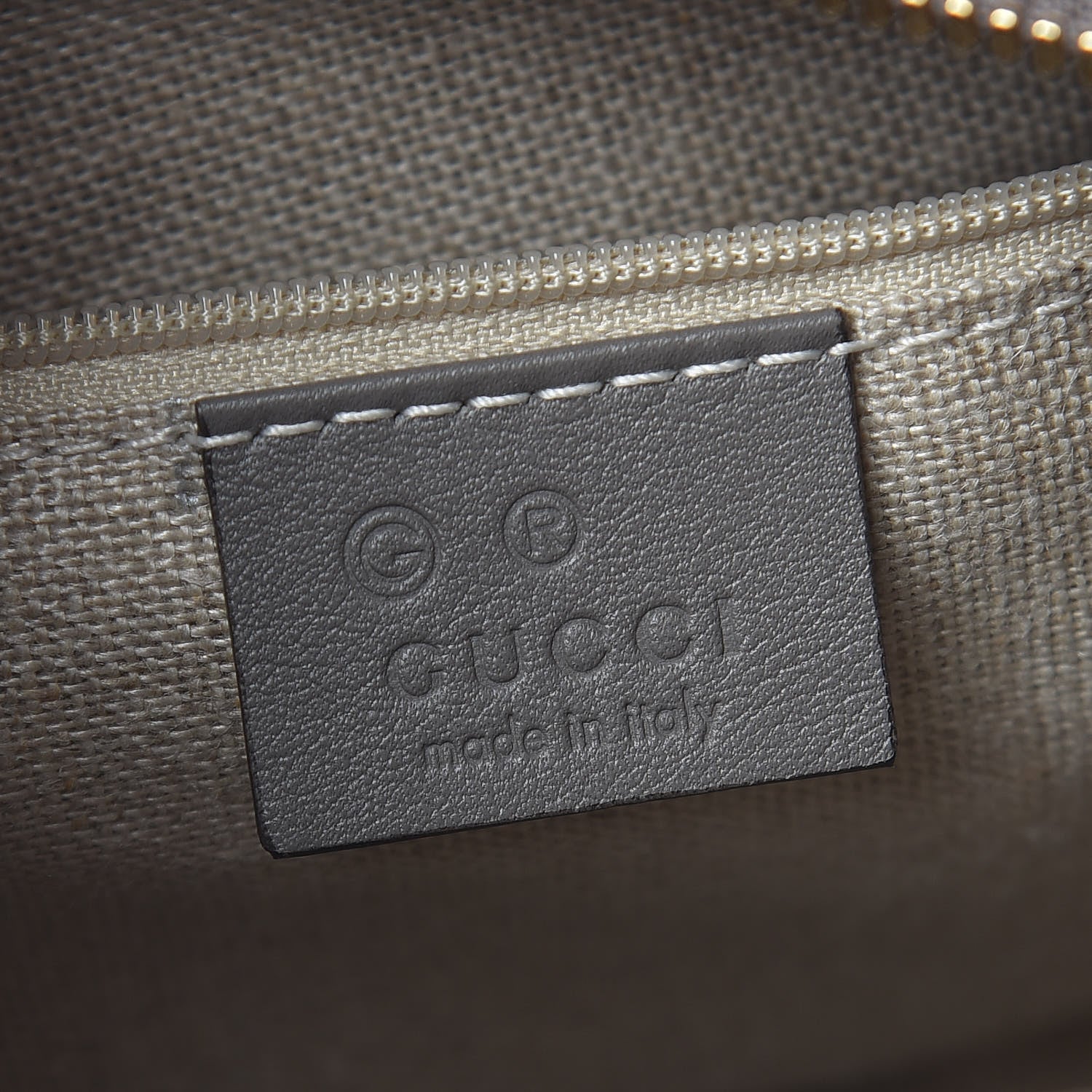 Gucci GG Logo Microguccissima gray handbag. The interior is lined in soft, durable linen and includes 2 slip pockets and 1 zipped pocket to keep you organized all day long. Complete with a cute Gucci charm.