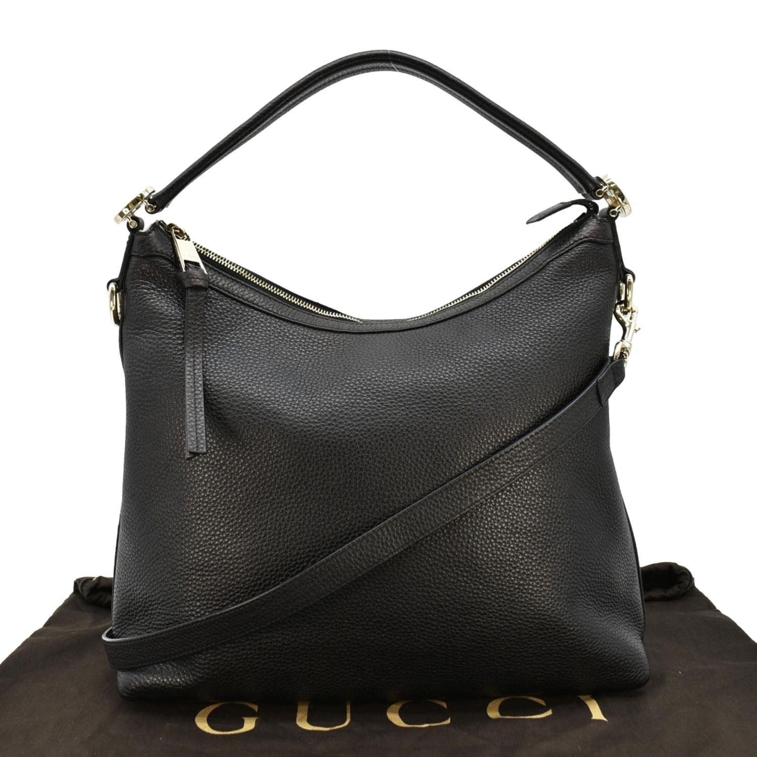 GUCCI Miss GG Original Pebbled Calfskin Leather Hobo Bag Black 326514