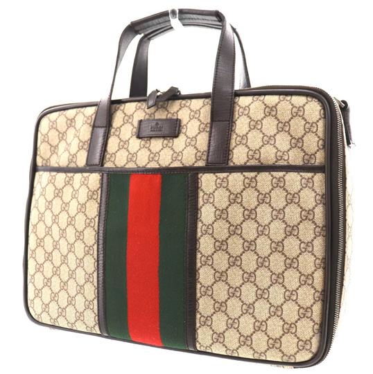 Gucci Monogram Unisex Brown Coated Canvas Laptop Handbag-Case