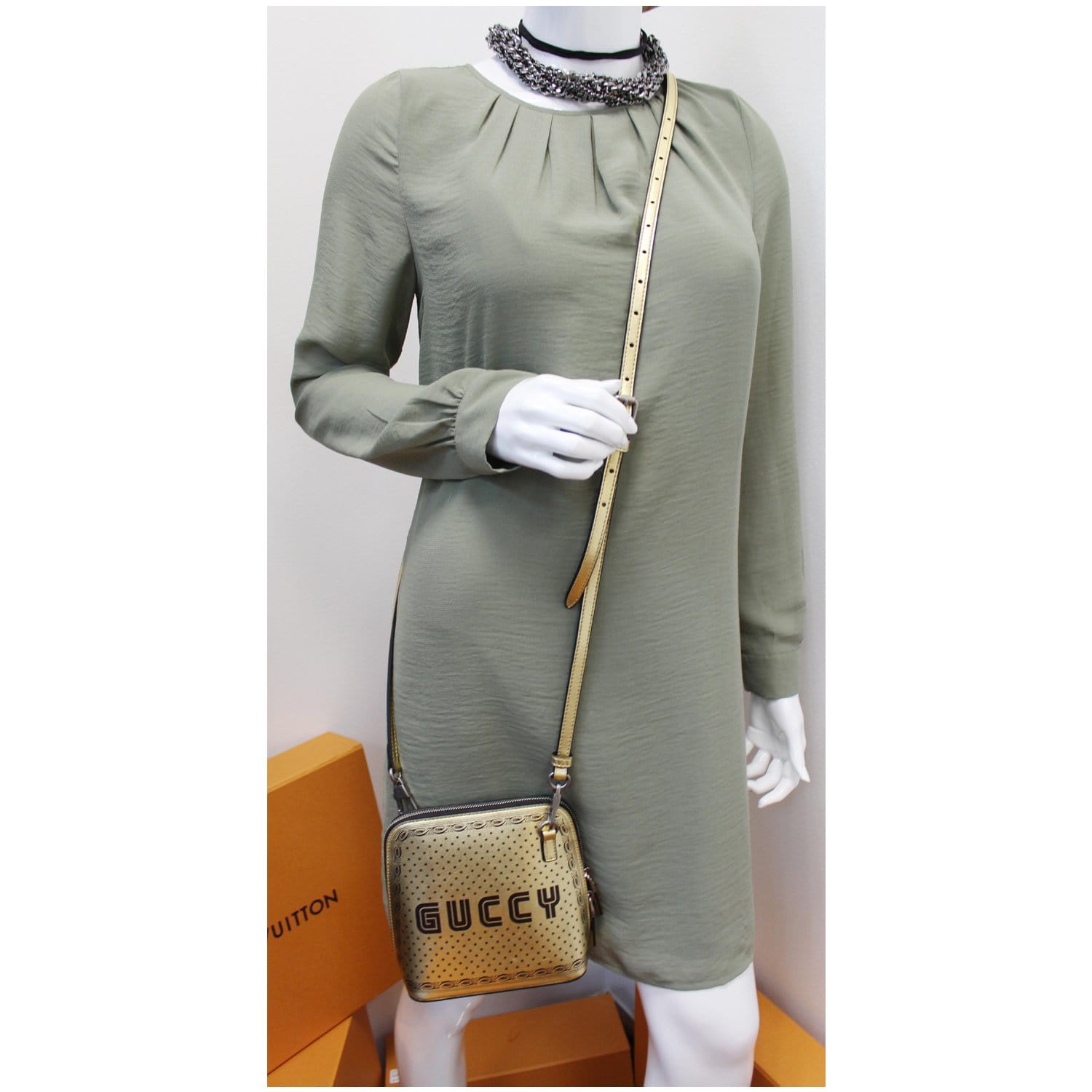 GUCCI Moon Steller Guccy Leather Crossbody Bag Gold