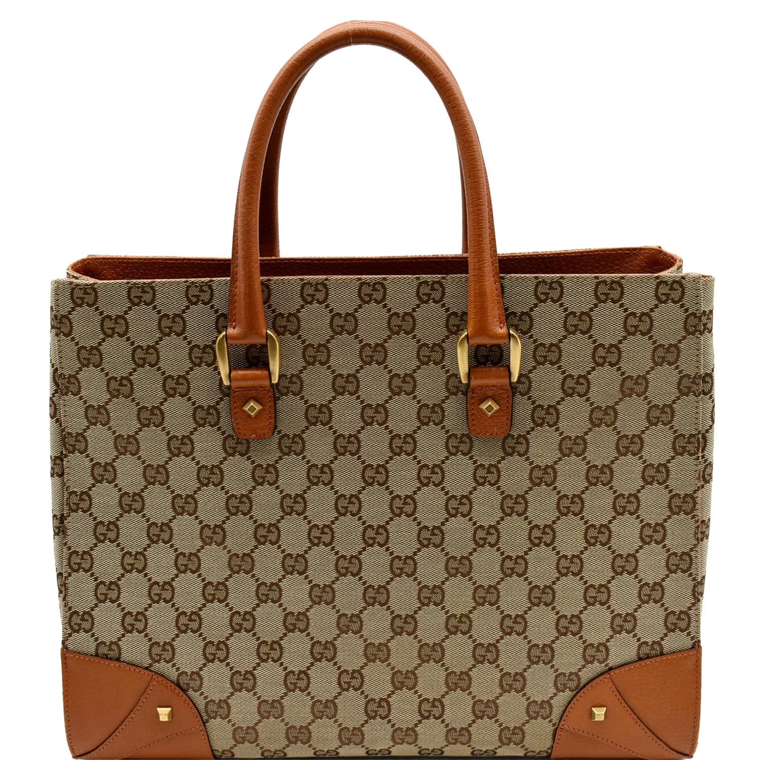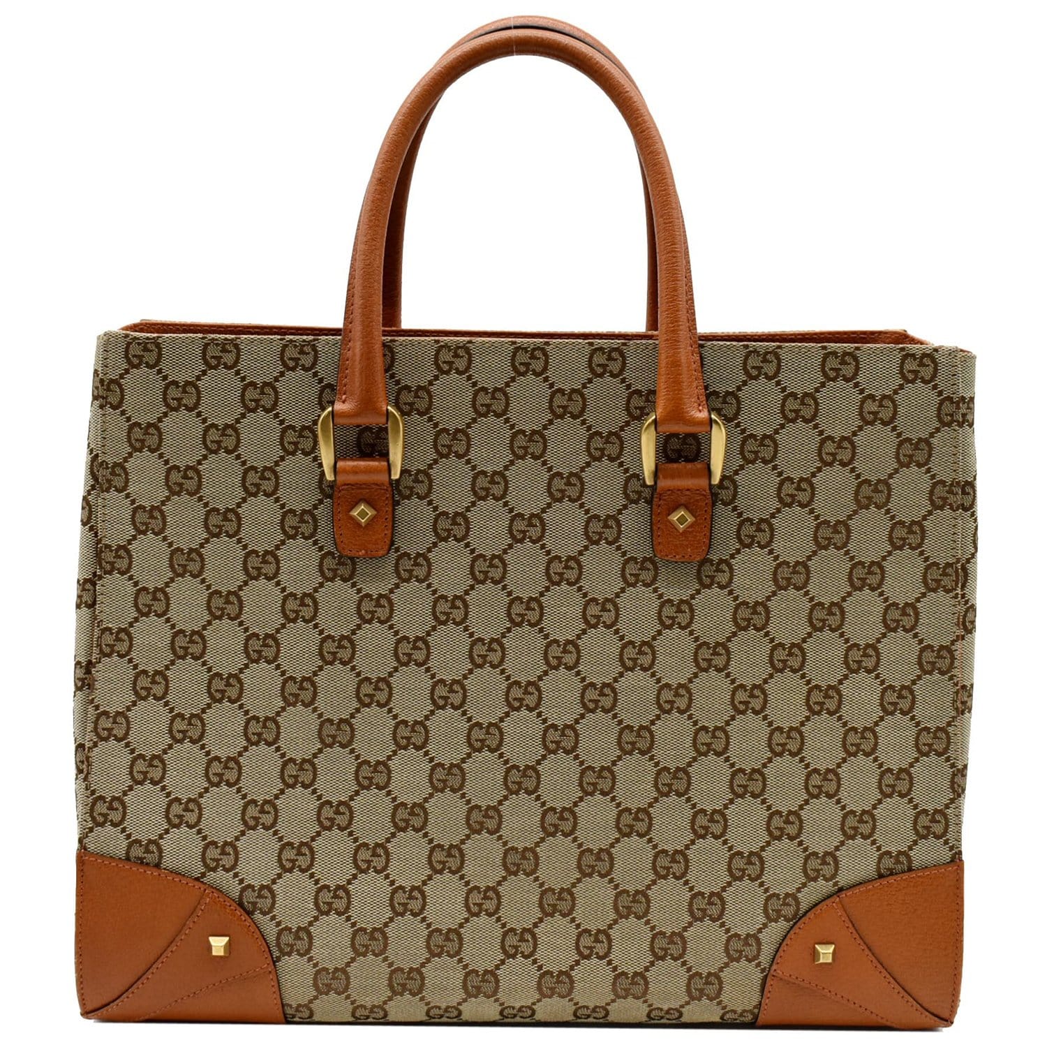 GUCCI Nailhead Medium GG Canvas Monogram Tote Bag Orange 120897