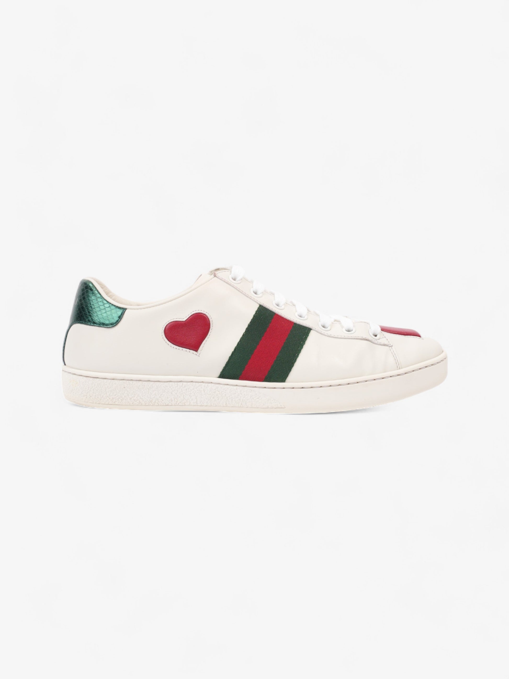 Gucci New Ace Low Heart Sneakers White / Red / Green Leather EU 40 UK 7