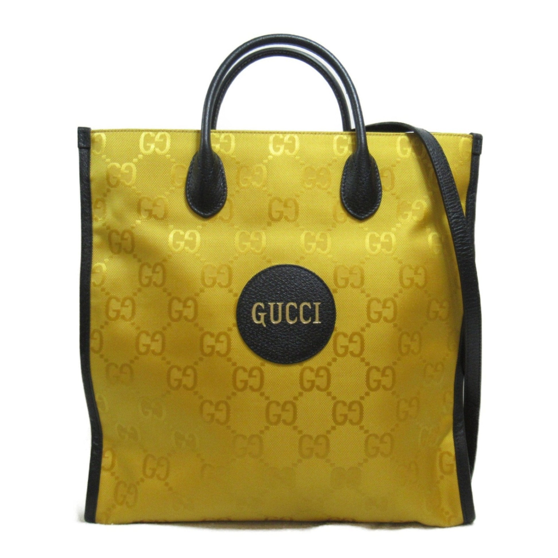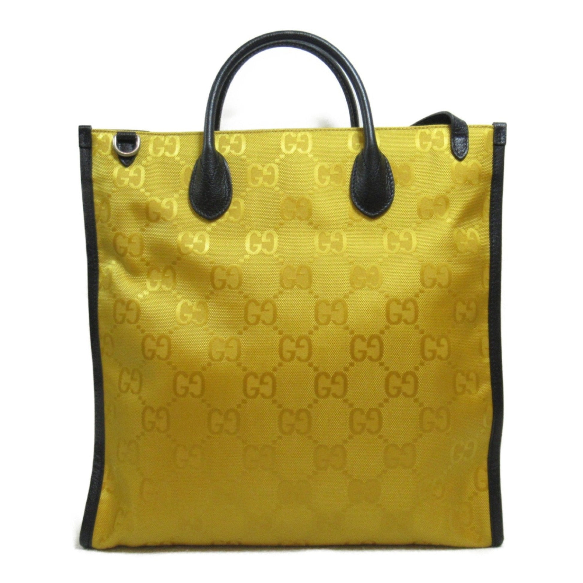 The Gucci Off the Grid tote bag is a chic and eco-conscious choice for women, designed with a combination of leather and nylon. Its striking black and yellow colorway provides a bold contrast, making it both fashionable and versatile for everyday use. The structured design, coupled with Gucci's signature craftsmanship, ensures a modern yet timeless appeal, suitable for any occasion.