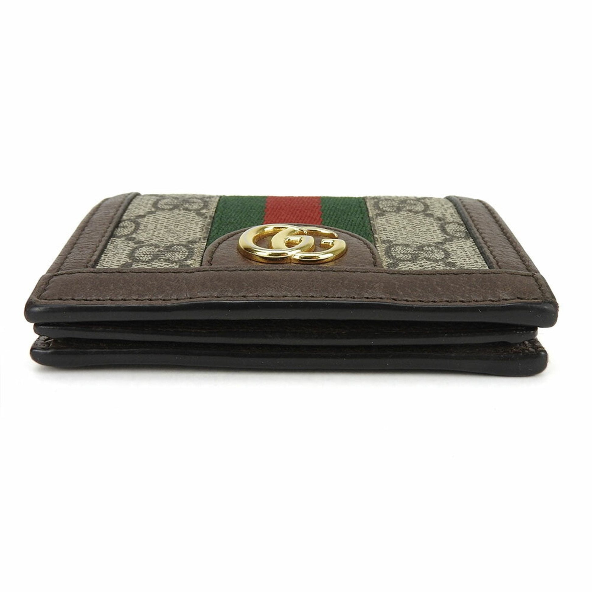 Introducing the Gucci Ophidia wallet, a versatile and stylish bi-fold accessory suitable for both men and women. Crafted from the iconic GG Supreme material in a classic beige and brown color scheme, this wallet exemplifies Gucci's timeless elegance and attention to detail. Perfect for those who appreciate luxury and functionality, the Ophidia wallet offers a sophisticated way to organize your essentials, making it a must-have addition to any fashion-forward individual's collection.