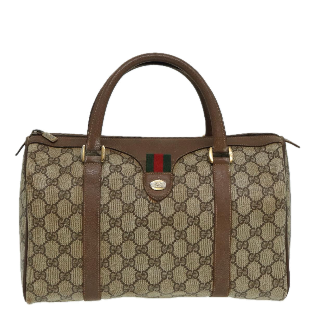 The Gucci Ophidia Boston bag is a stylish piece crafted from beige and red PVC leather and GG canvas. Its design combines classic Gucci elements with practical functionality.